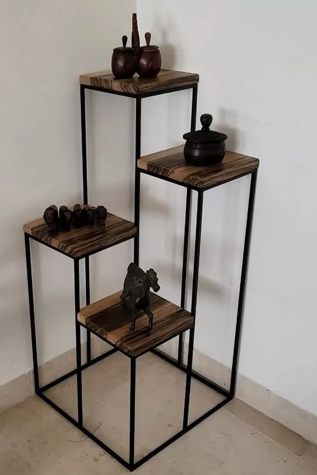 Support de Présentation Multiniveau en Bois et Métal Noir – Style Industriel