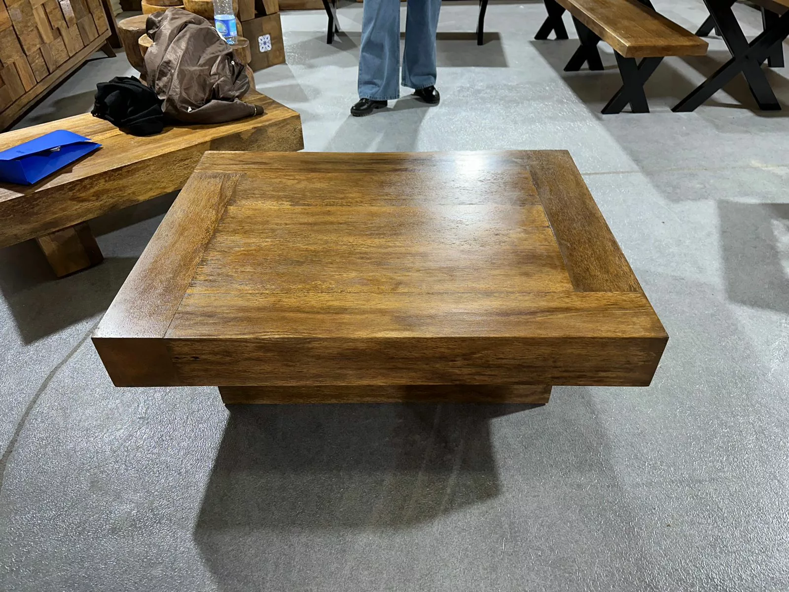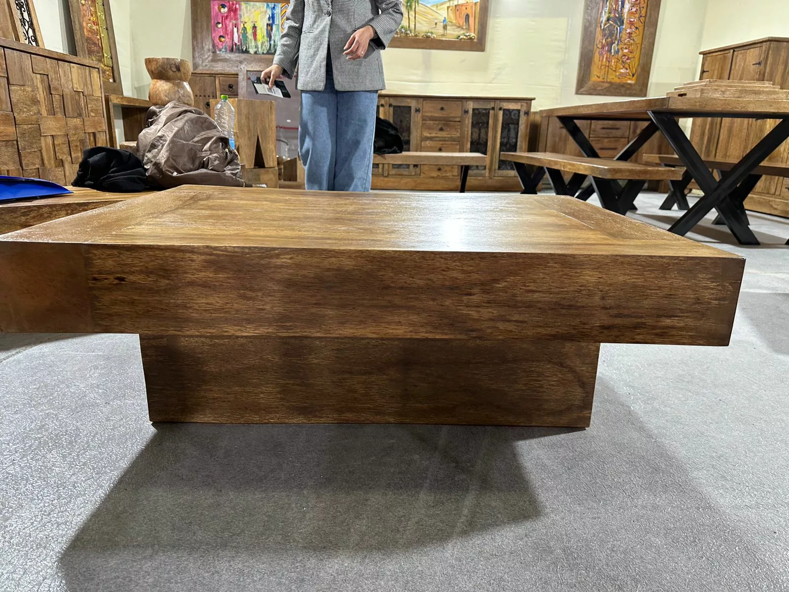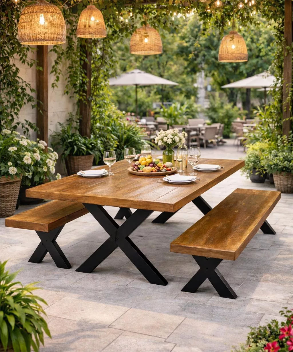 Table à manger industrielle en bois de palmier – Structure métal croisé