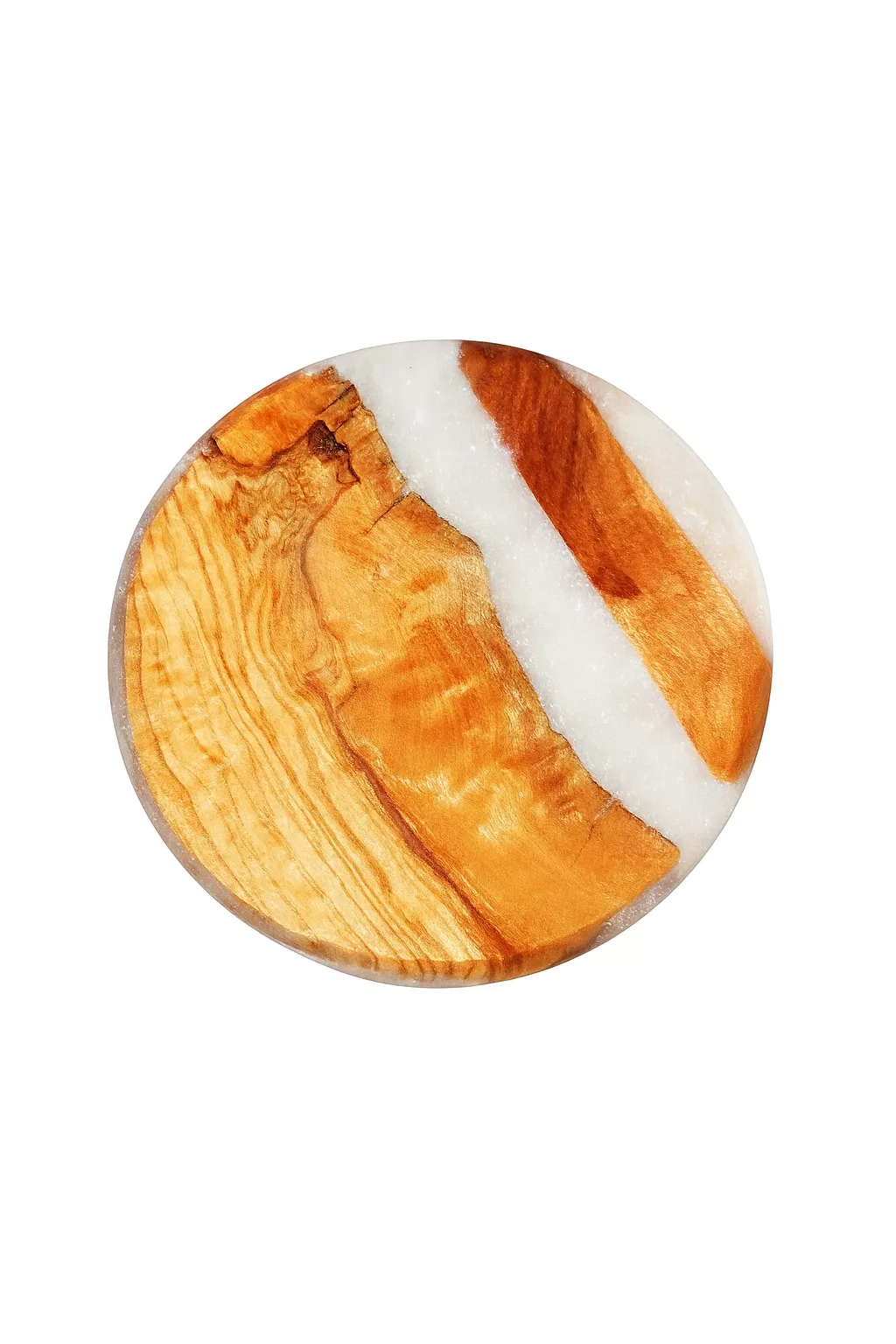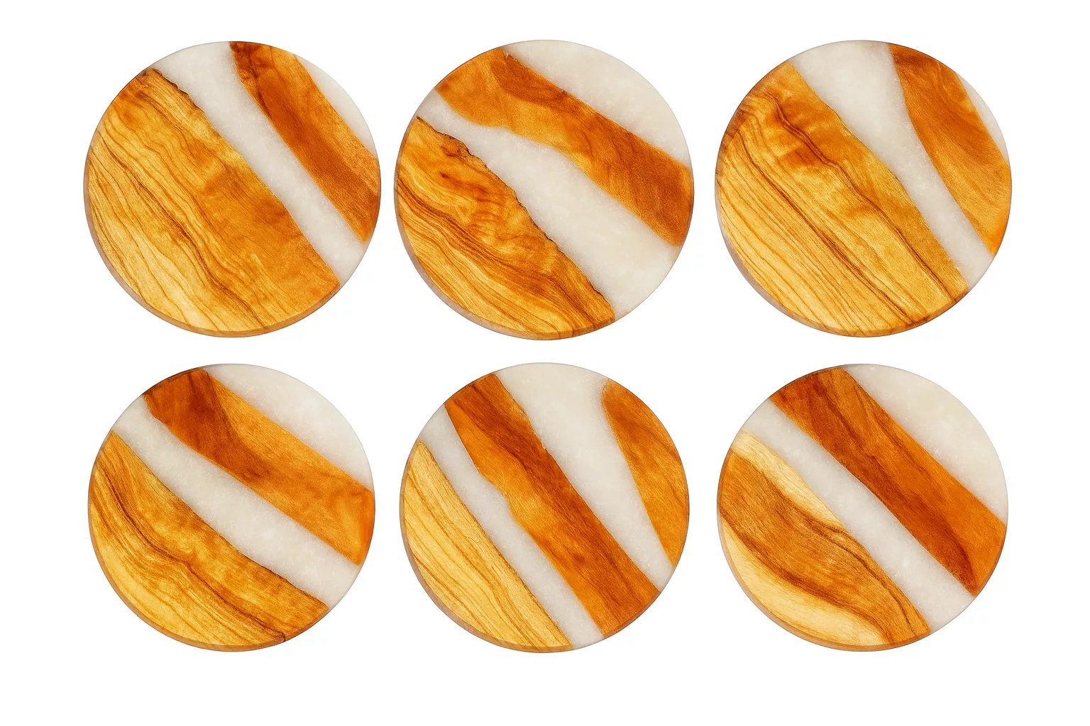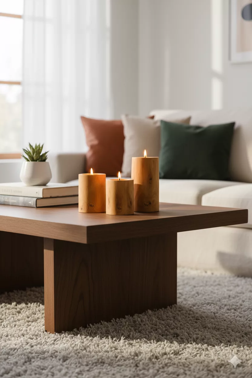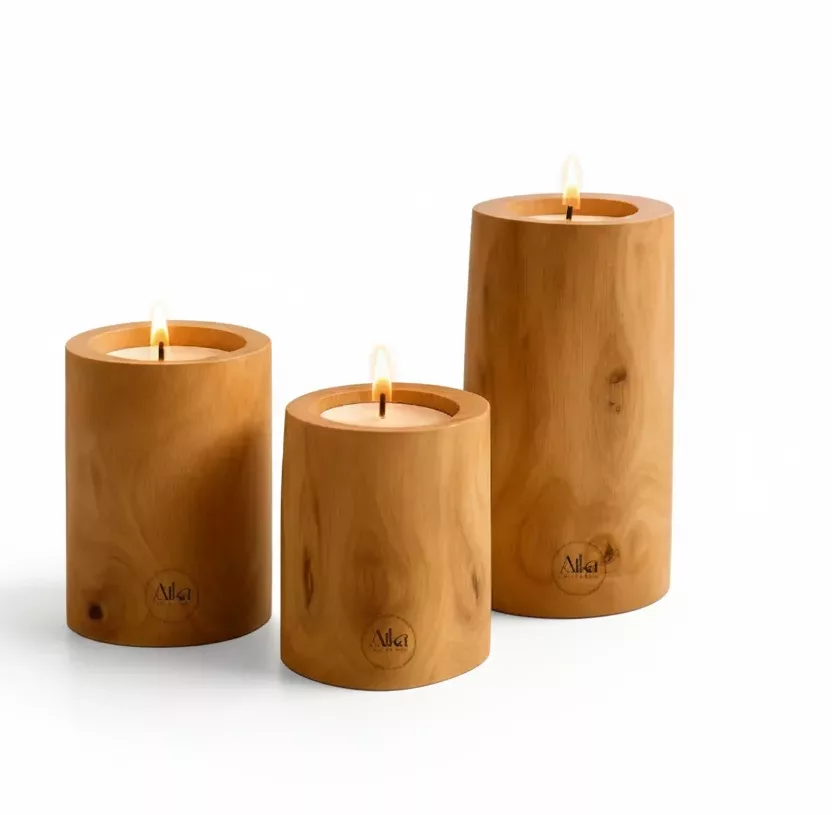 Ensemble de 3 porte-bougies cylindriques en bois d’olive avec bougies incluses