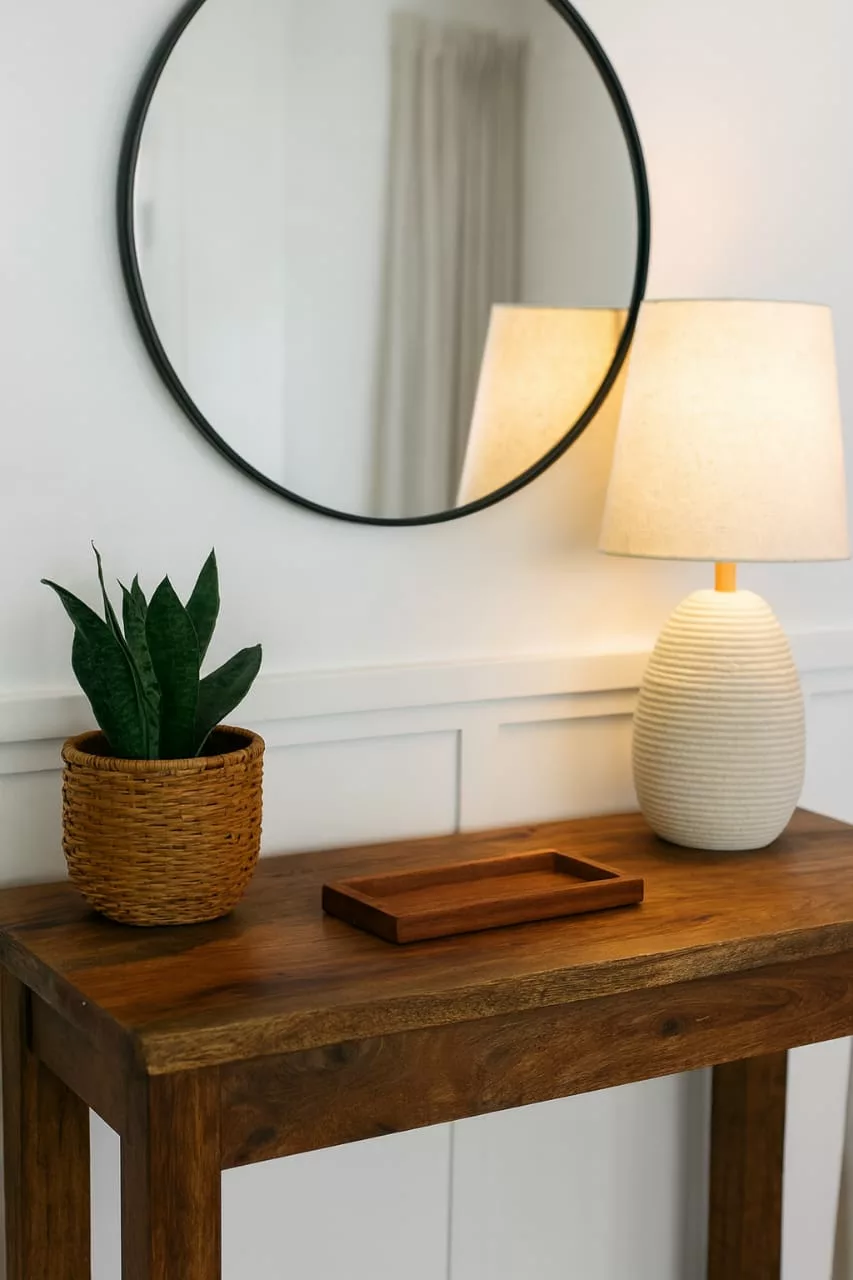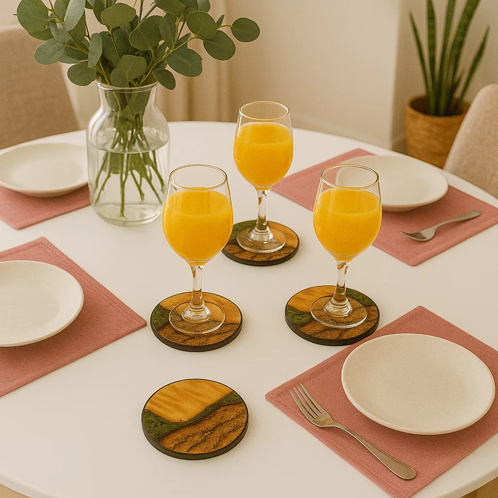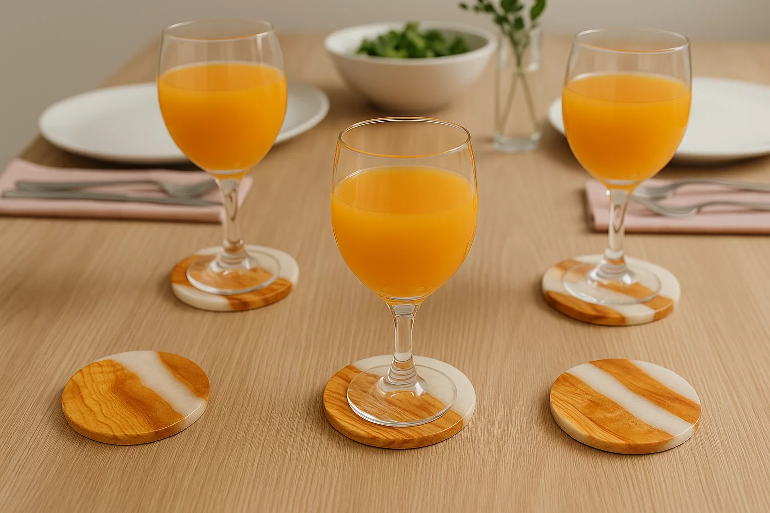 Ensemble de 3 porte-bougies cylindriques en bois d’olive avec bougies incluses