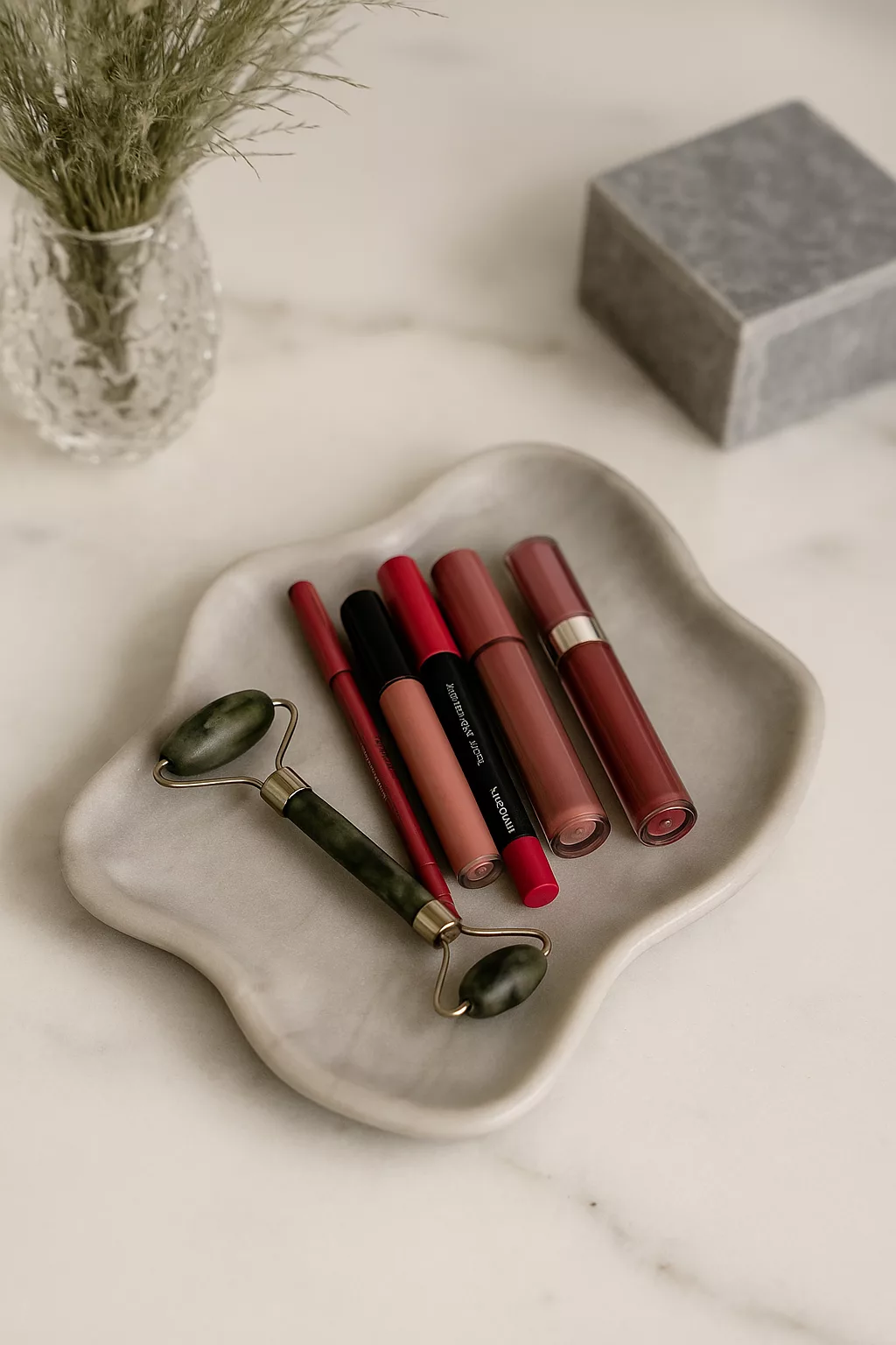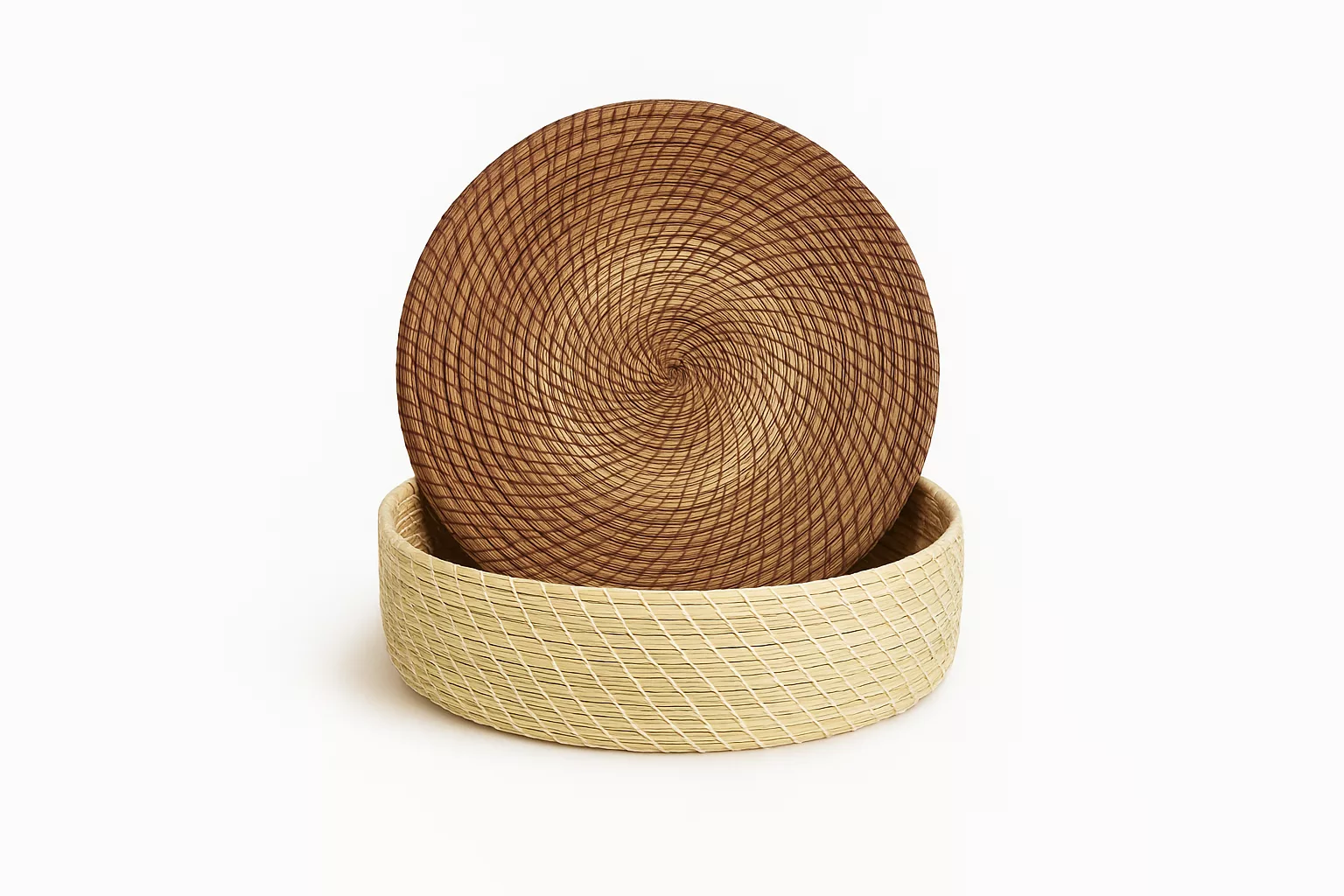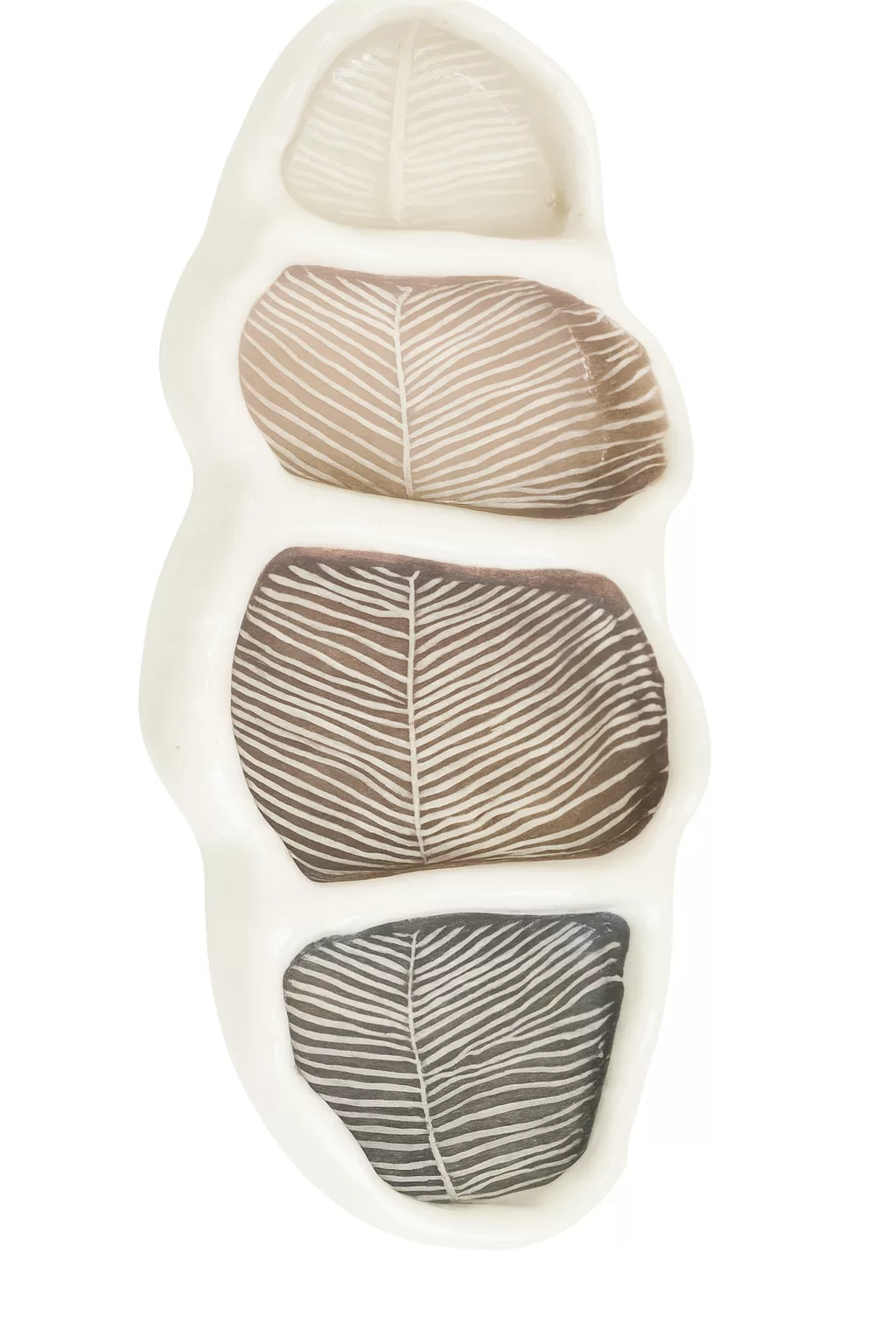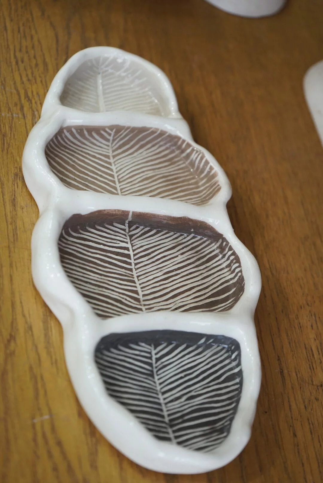 Plat compartimenté en céramique alimentaire – Design organique à décor feuilles