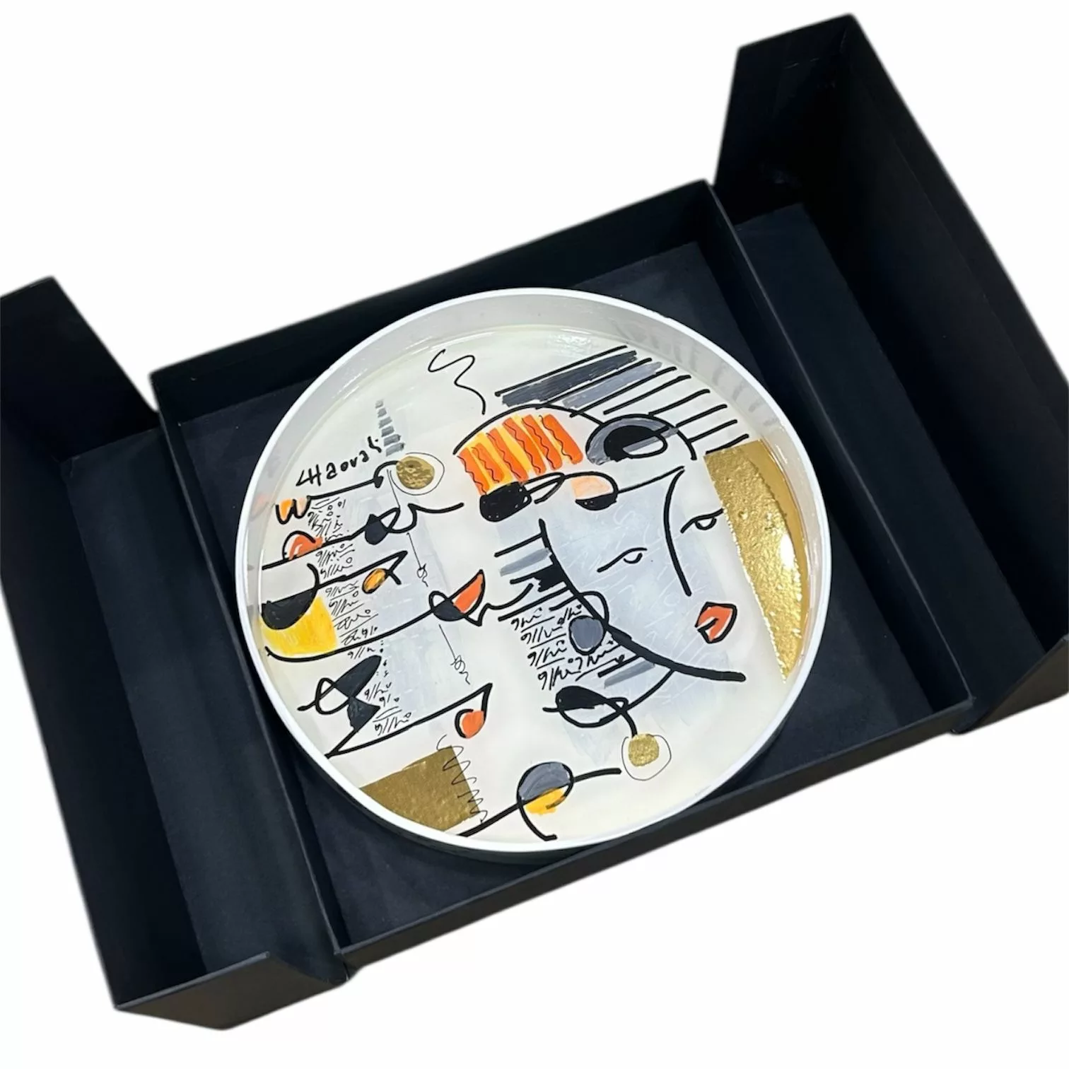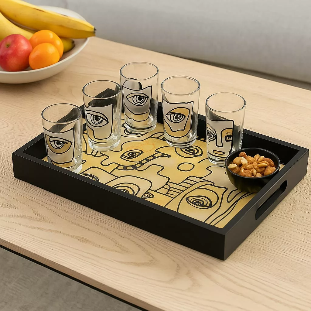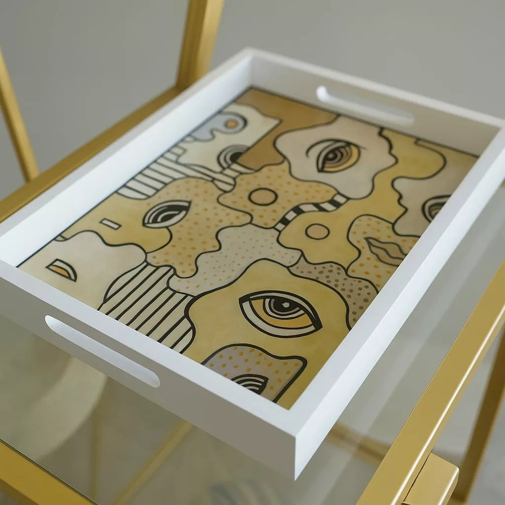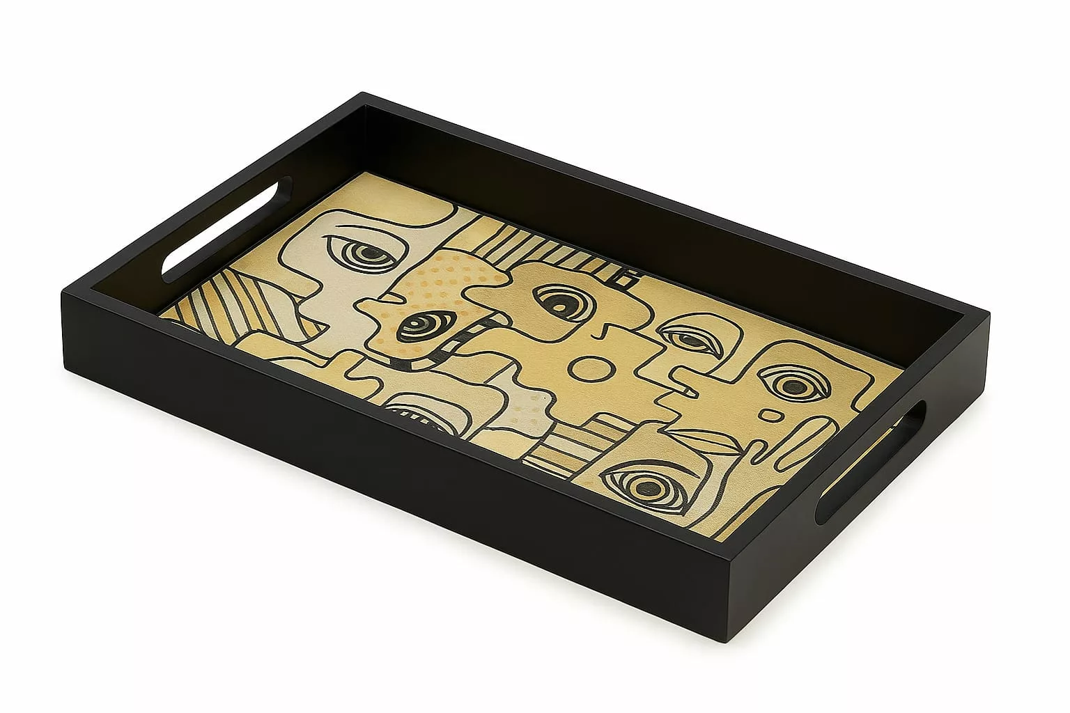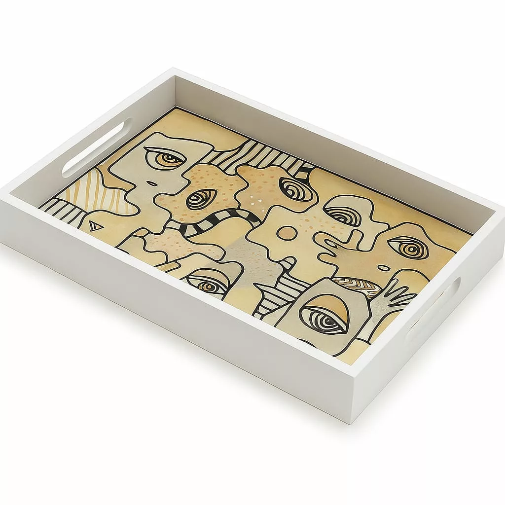 Plateau rectangulaire en bois 25 x 35 cm – Design artistique – Visages cubistes