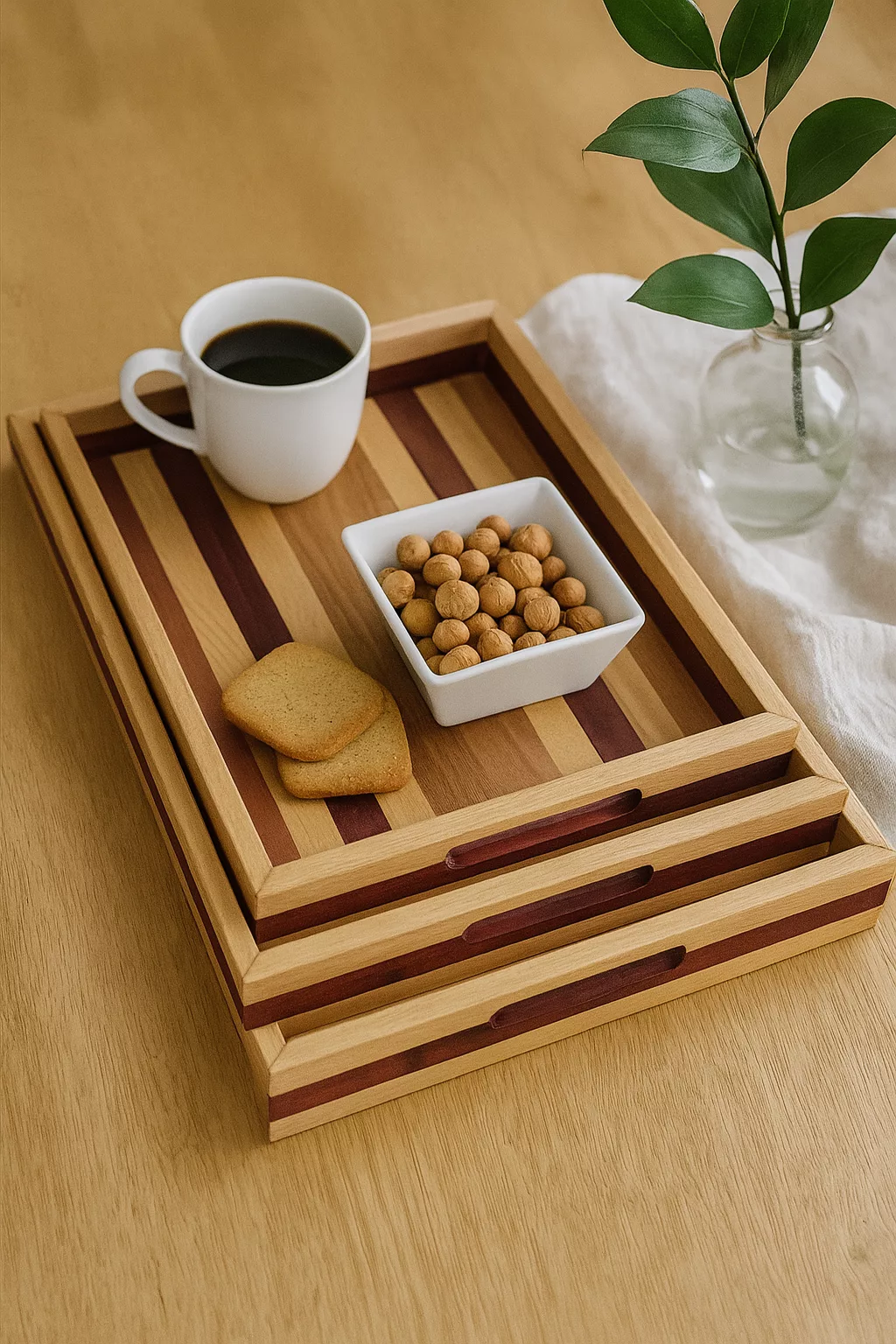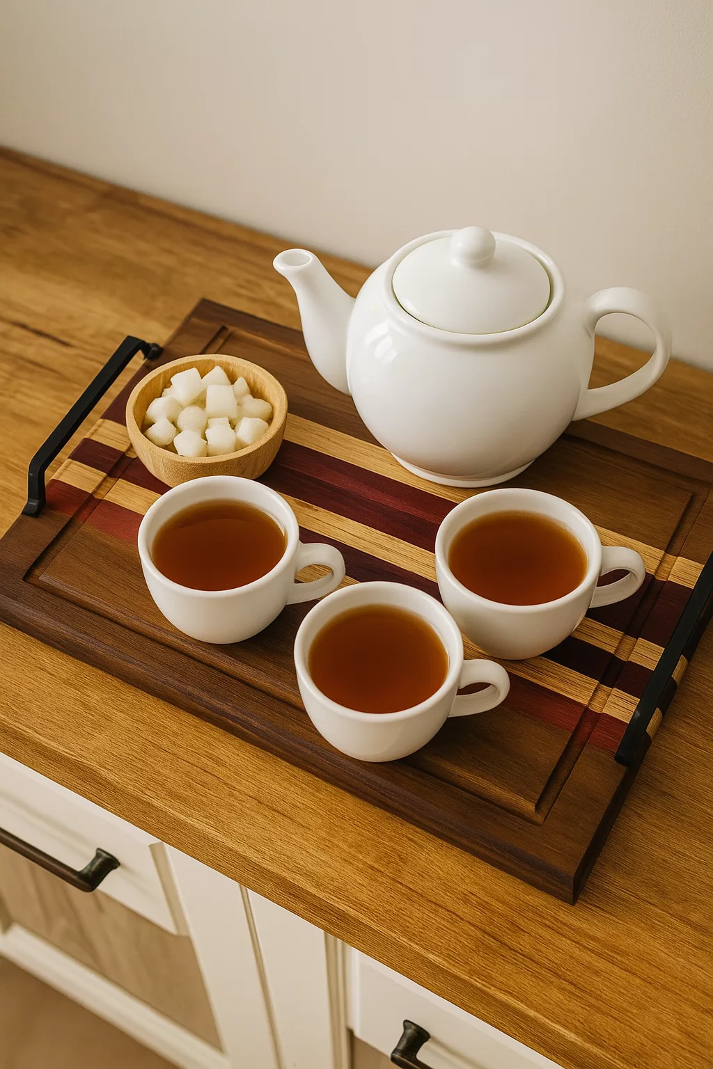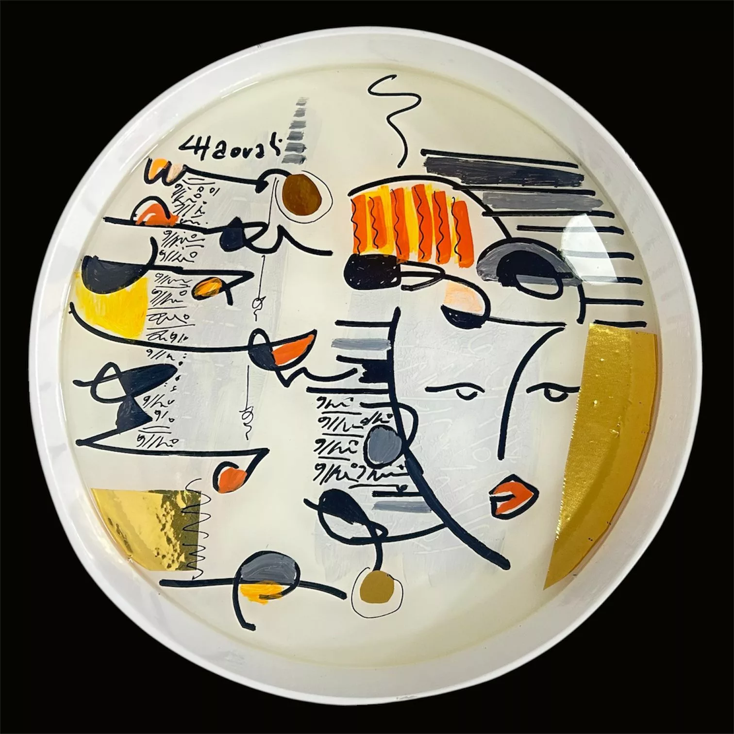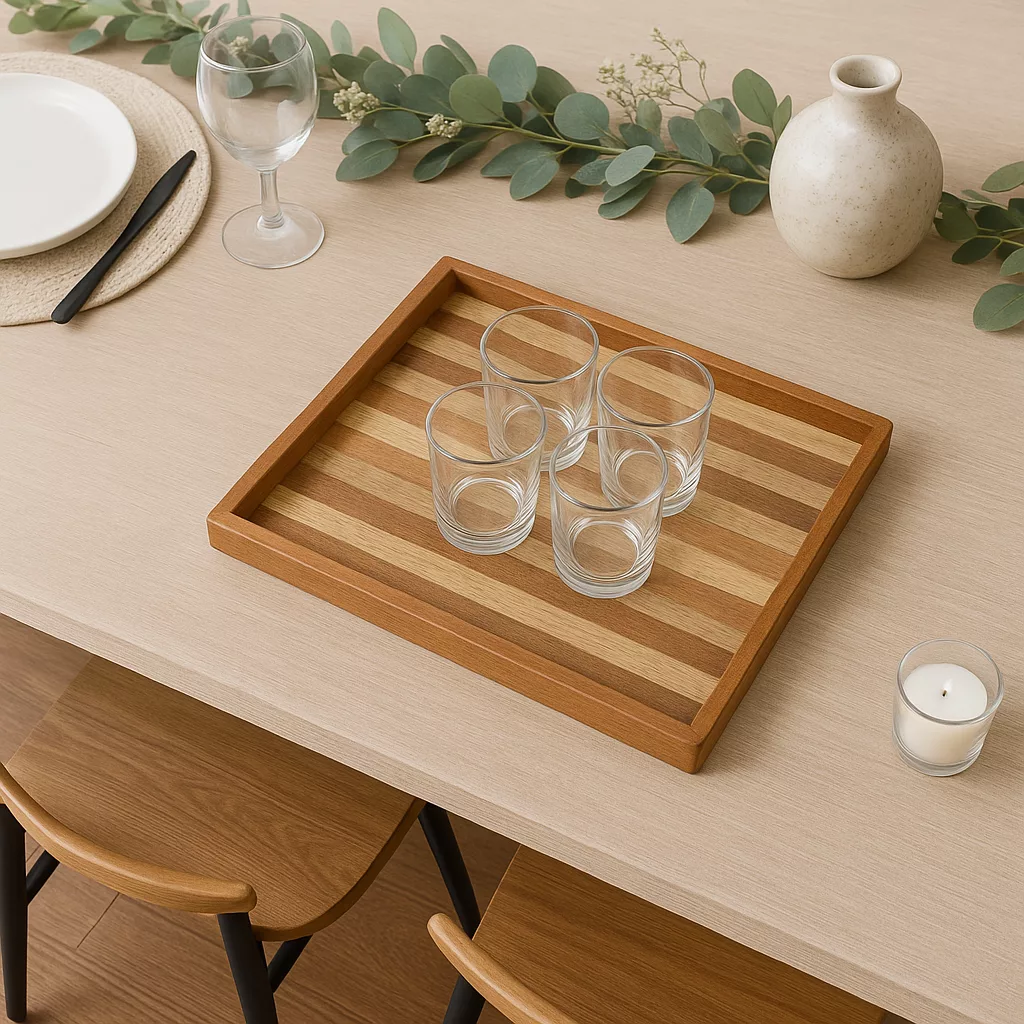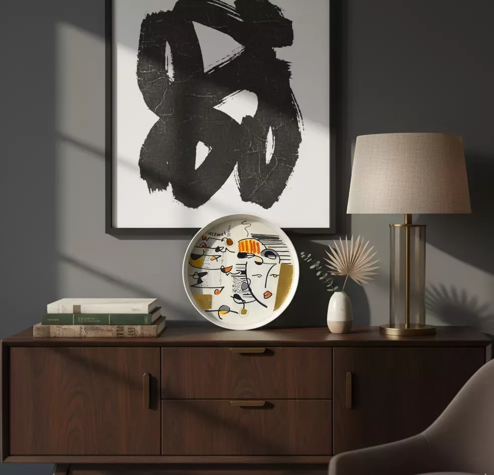 Plateau rectangulaire en bois 25 x 35 cm – Design artistique – Visages cubistes