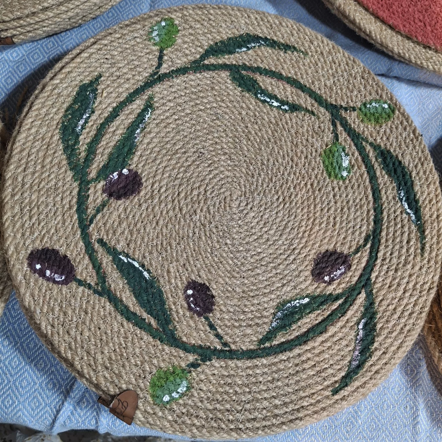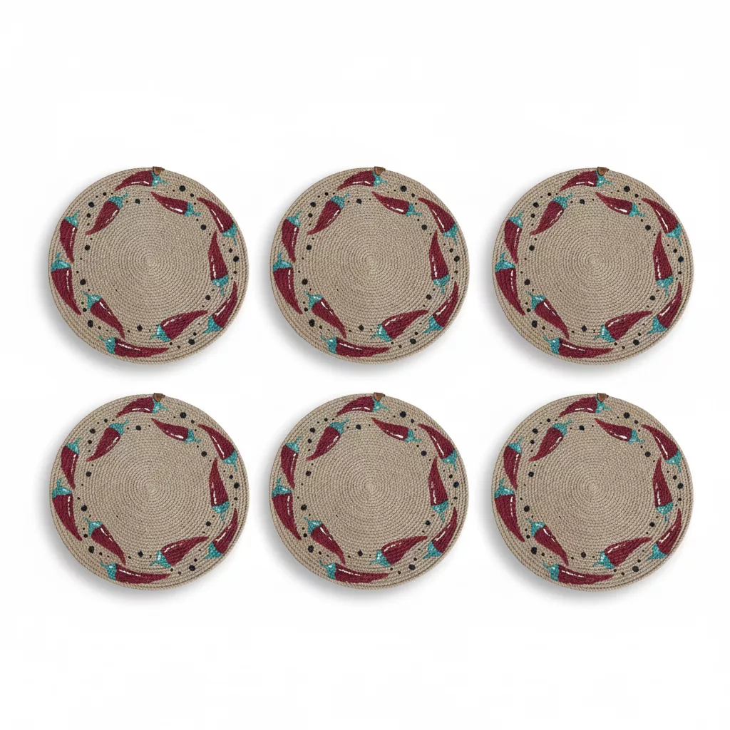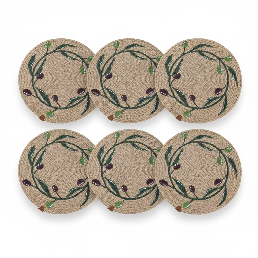 Série de 6 sous plats en Corde Naturelle – Motif Branche d’Olivier