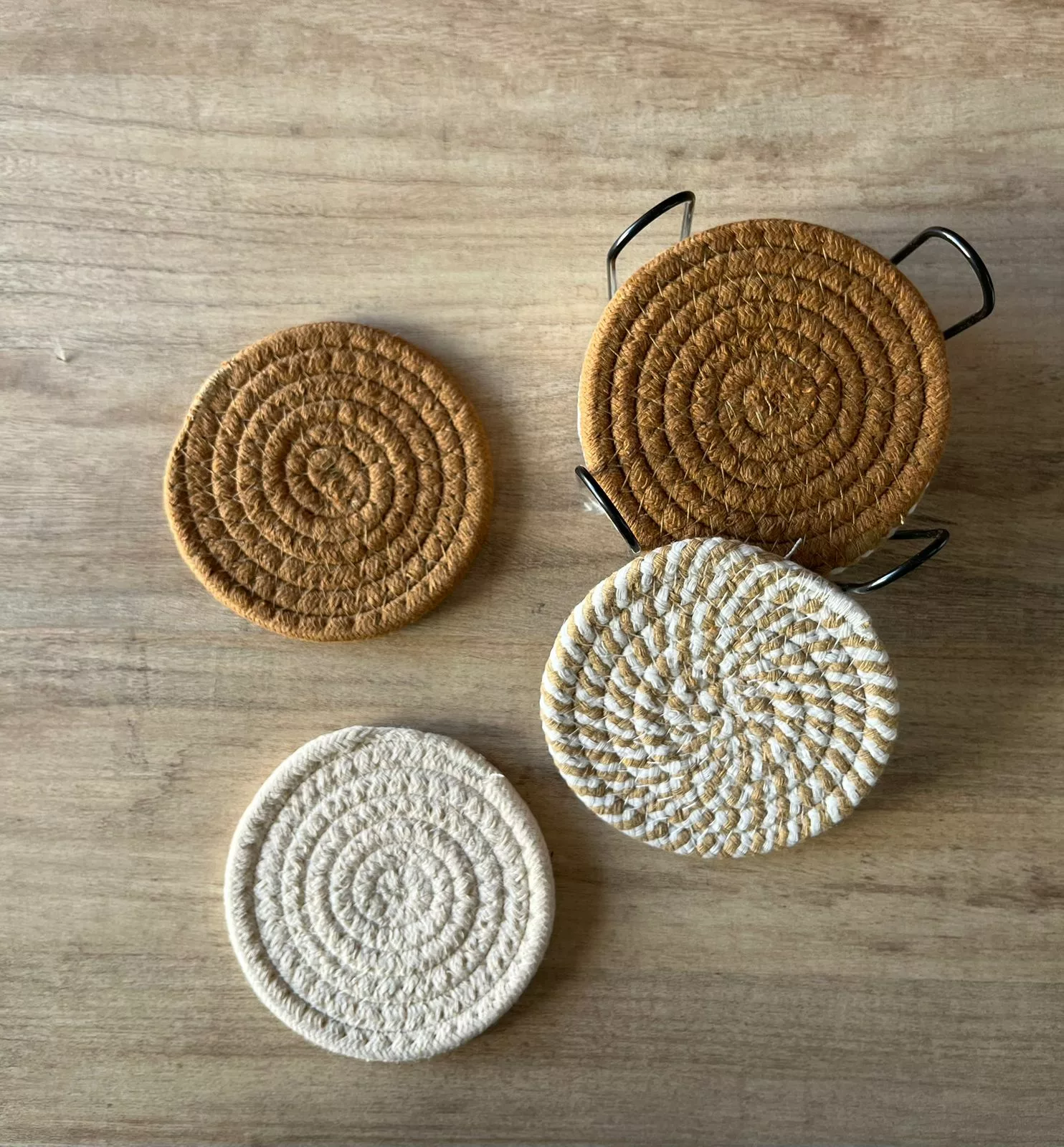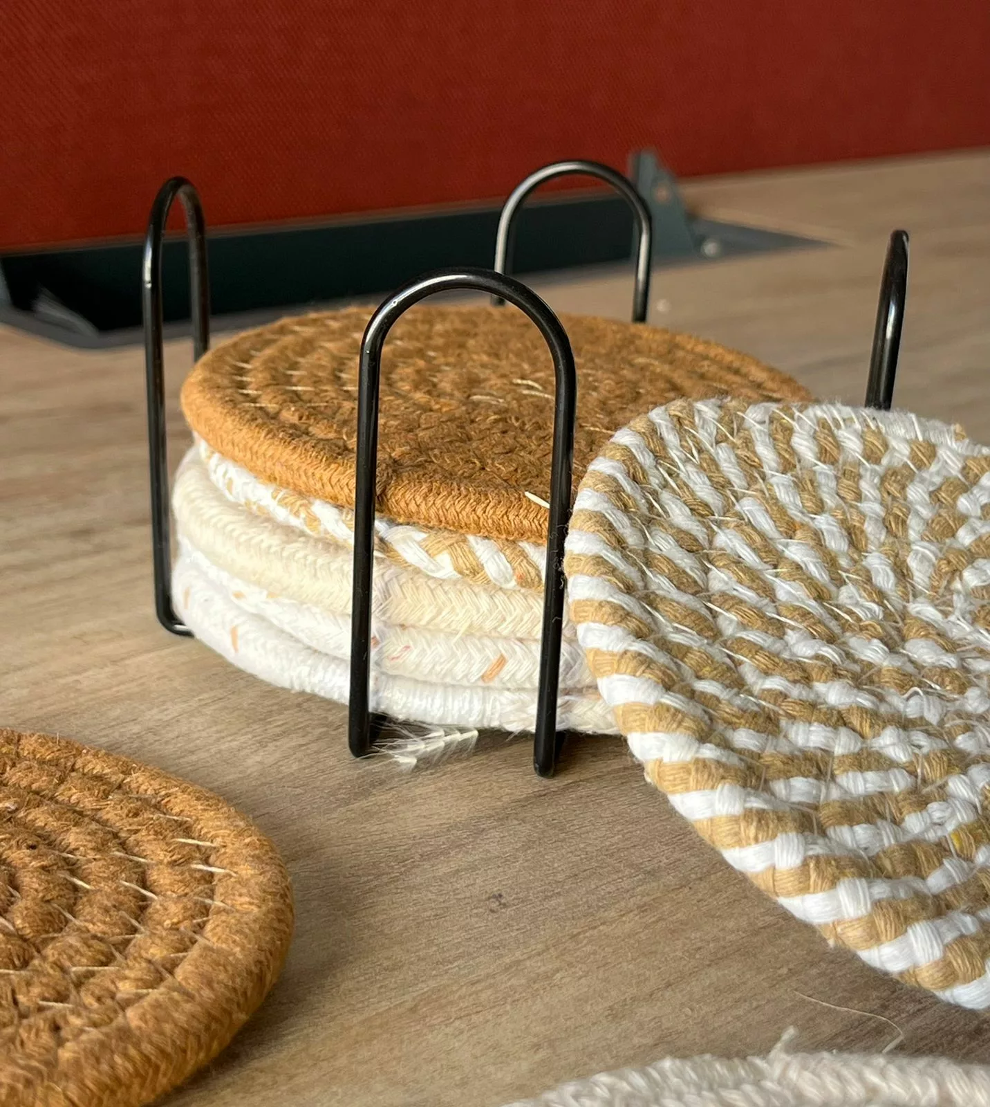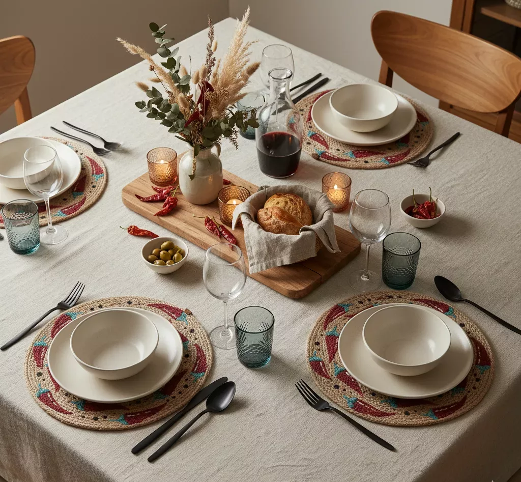 Série de 6 sous plats en Corde Naturelle – Motif Branche d’Olivier