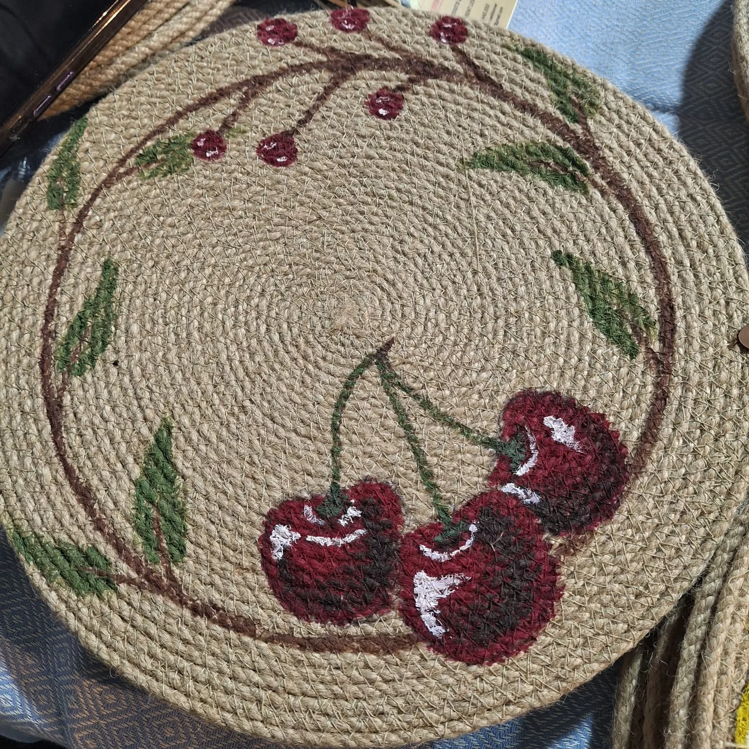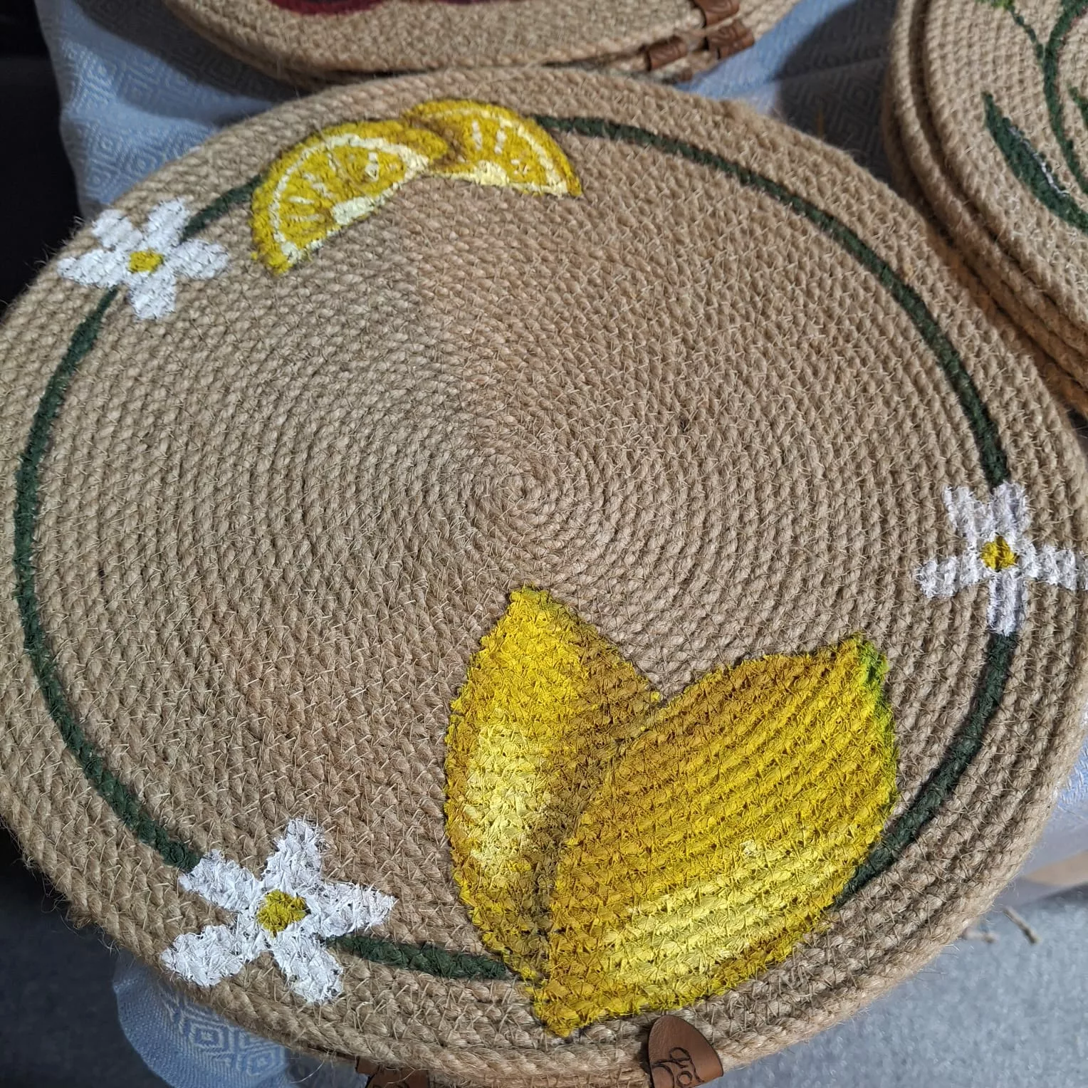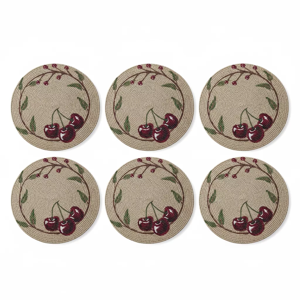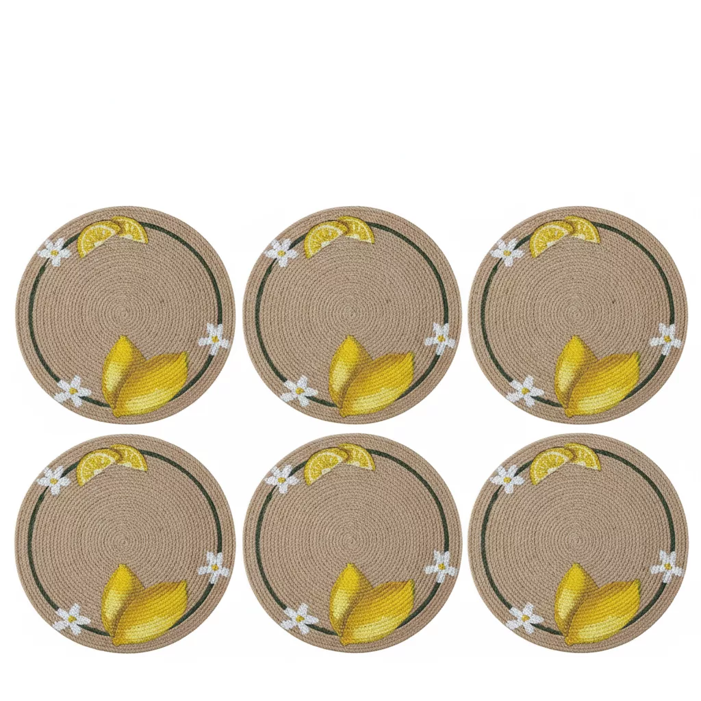 Serie de 6 sous plats en Corde Naturelle – Motif Citron et Fleurs