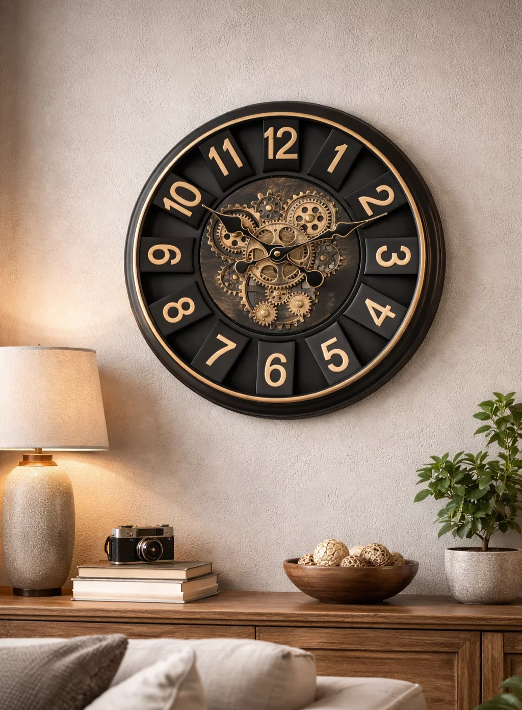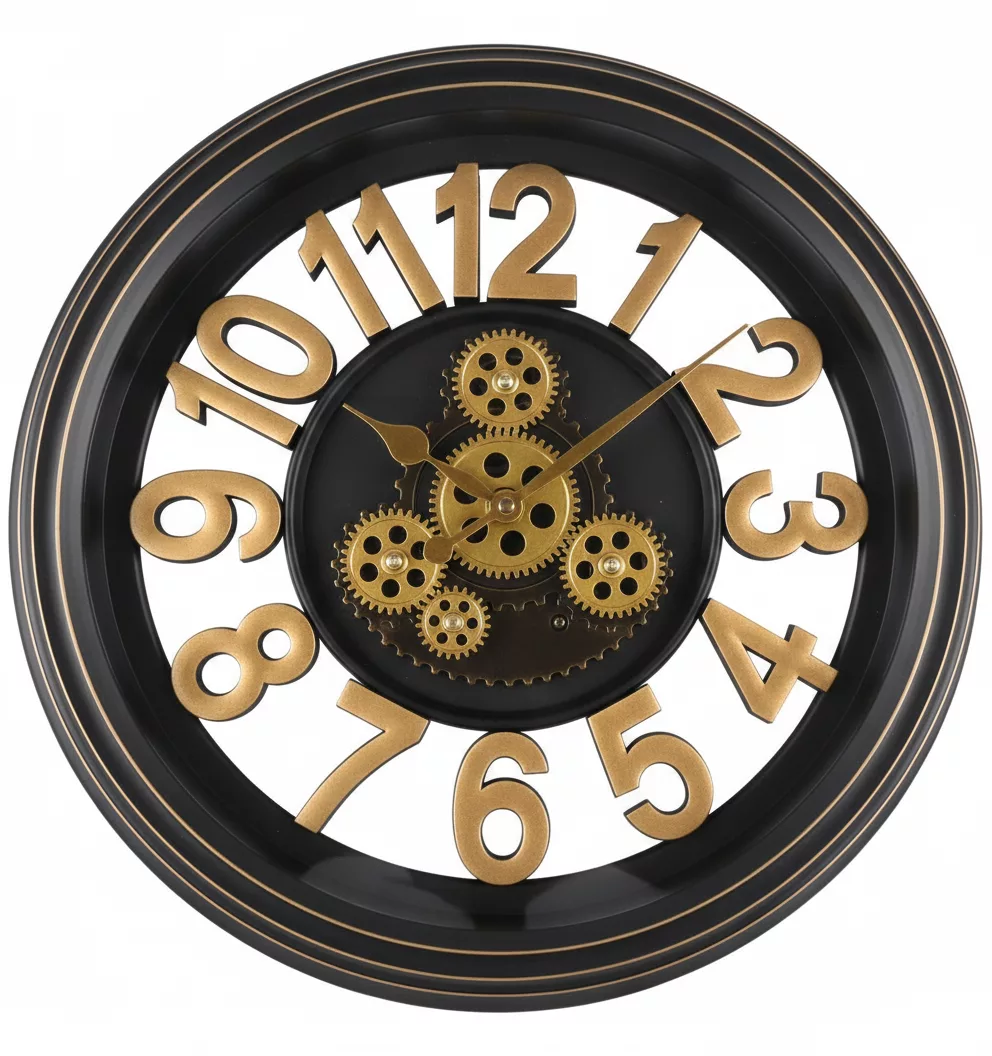 Horloge Murale Industrielle Steampunk Noire & Dorée