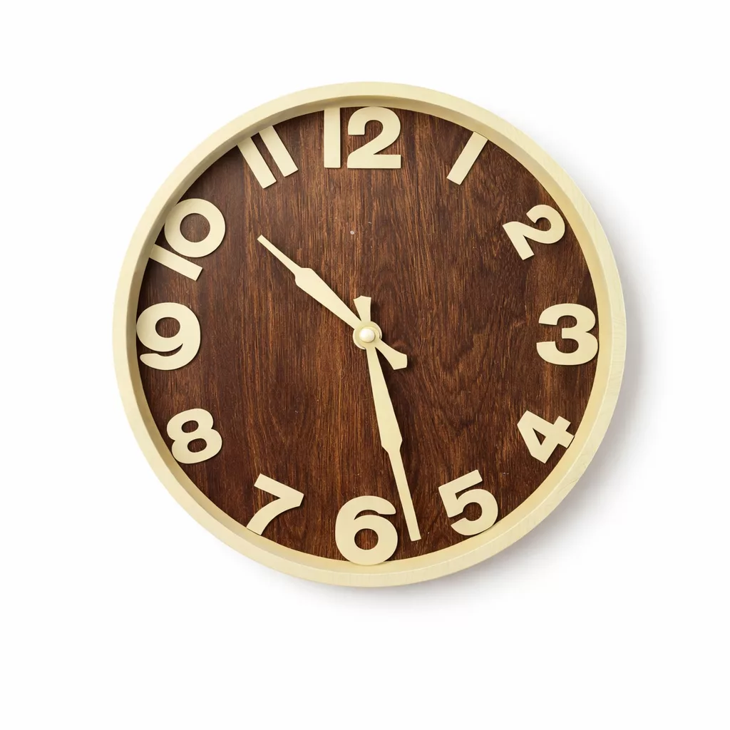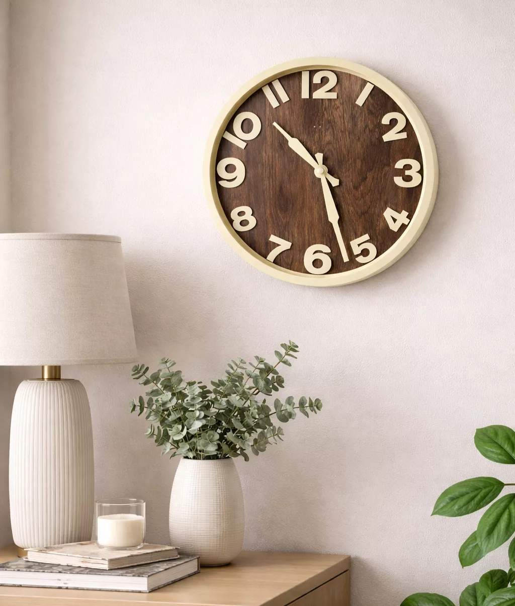 Horloge Murale Design Bois Foncé & Cadre Crème