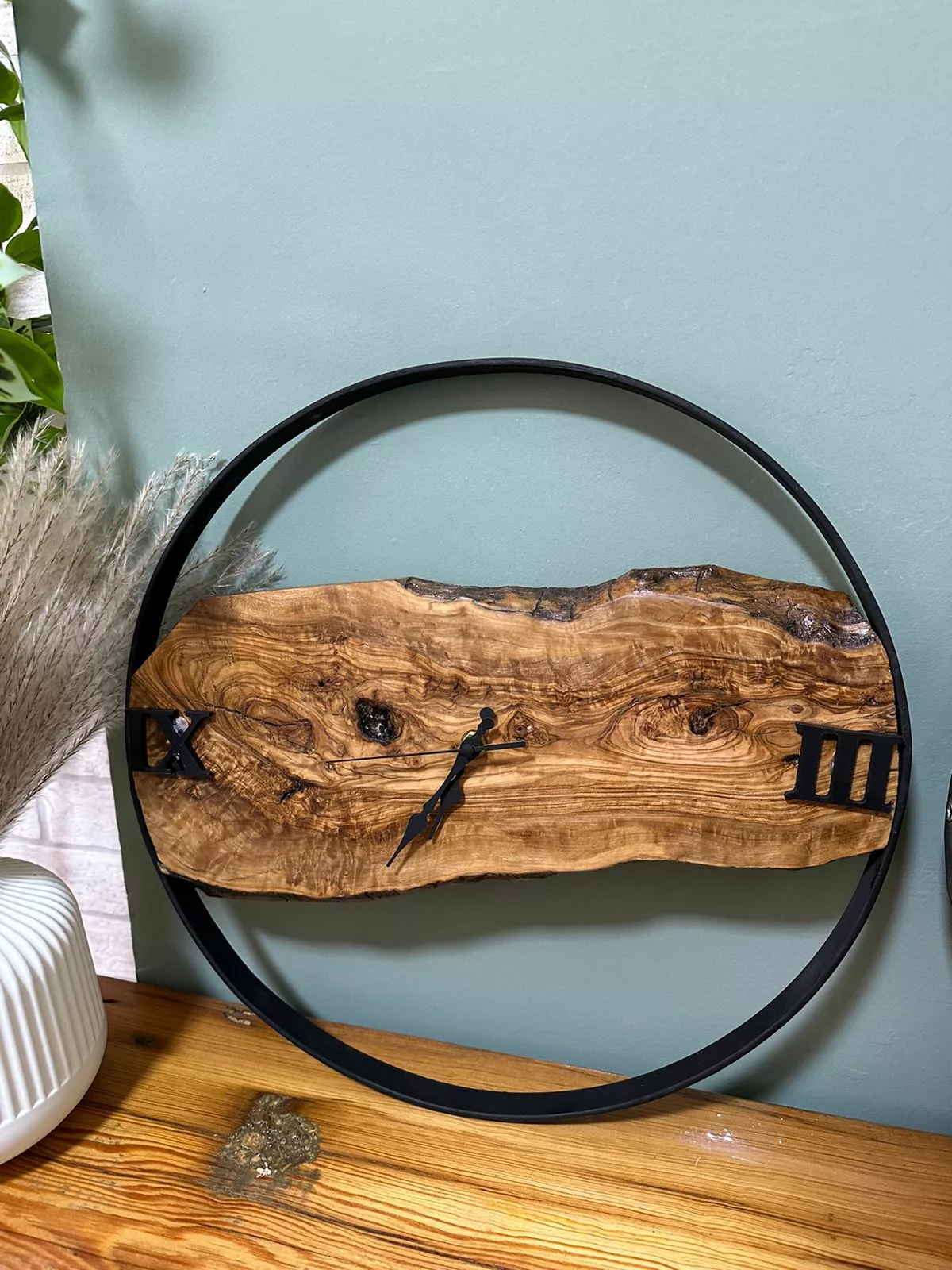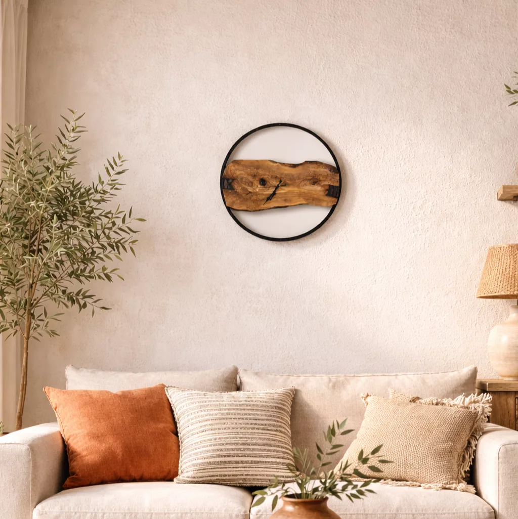 Horloge Murale Design en Bois Naturel – Cadre Noir Minimaliste