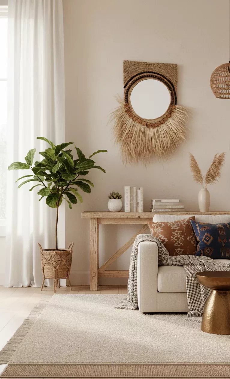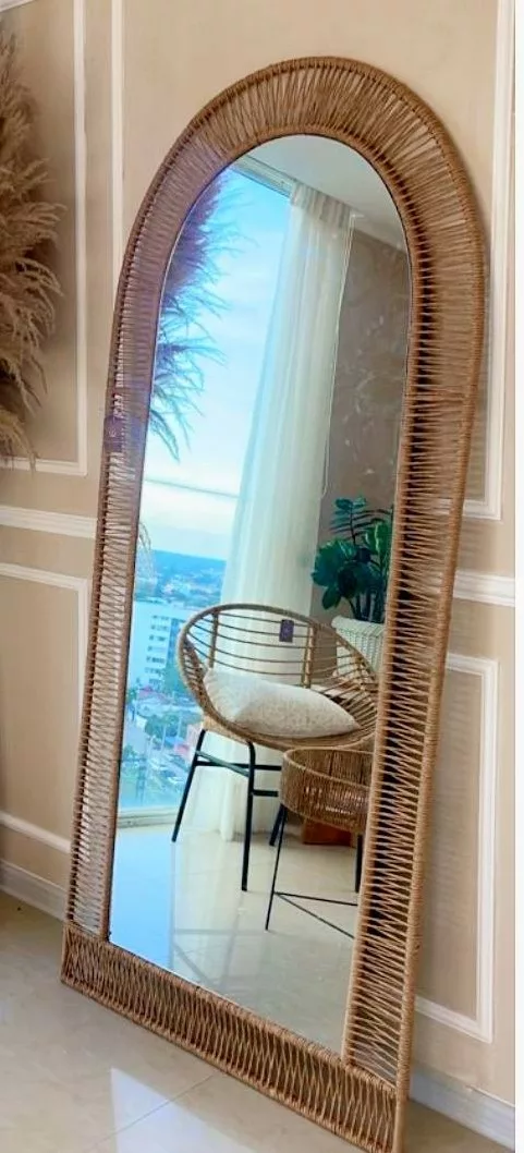 Miroir Psyché en Rotin Tressé – Arche Bohème Chic