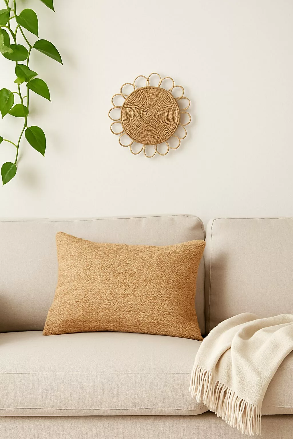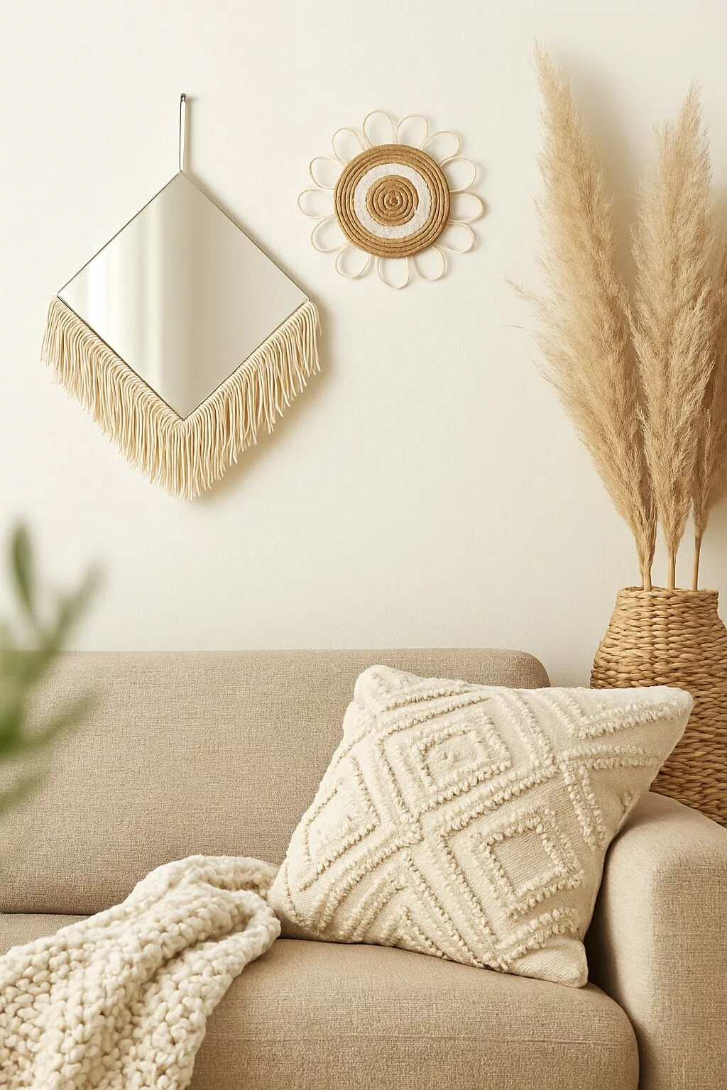 Ensemble mural bohème – Miroir & panneaux décoratifs en fibres naturelles