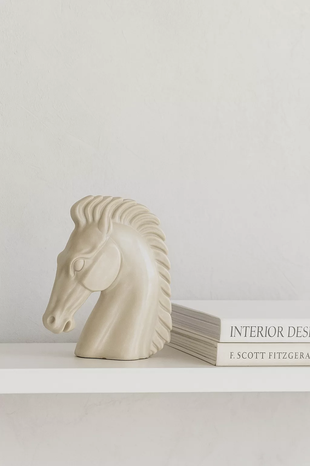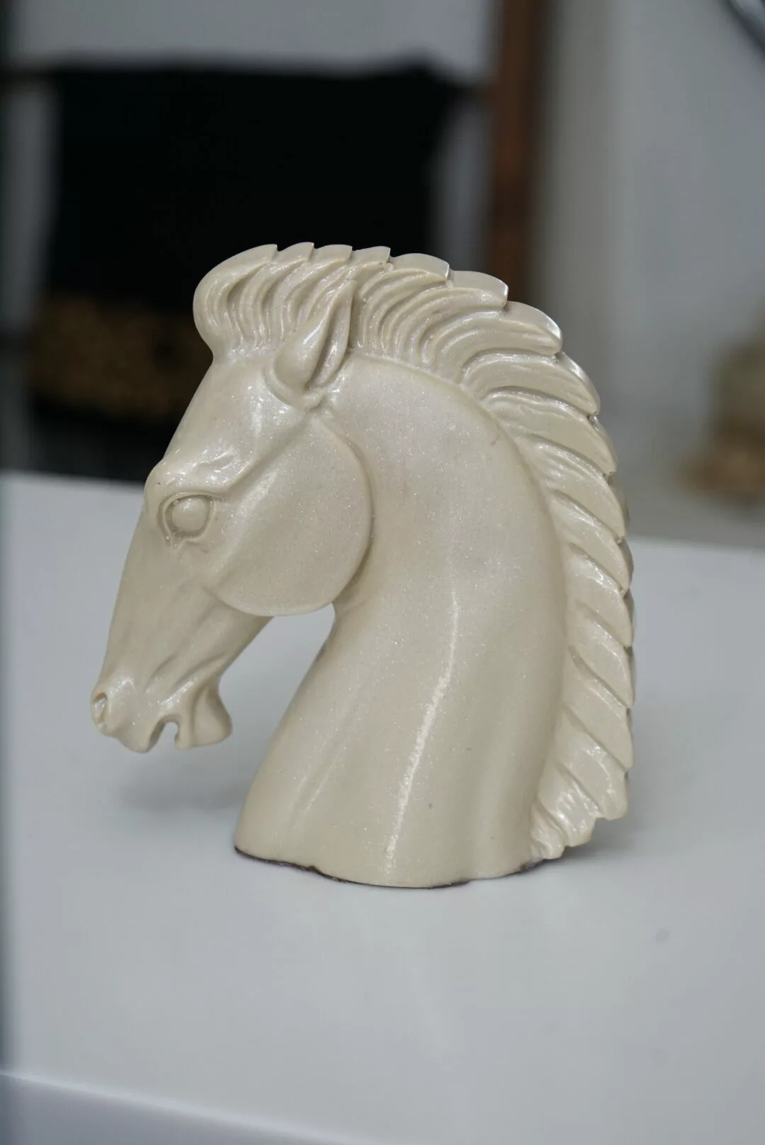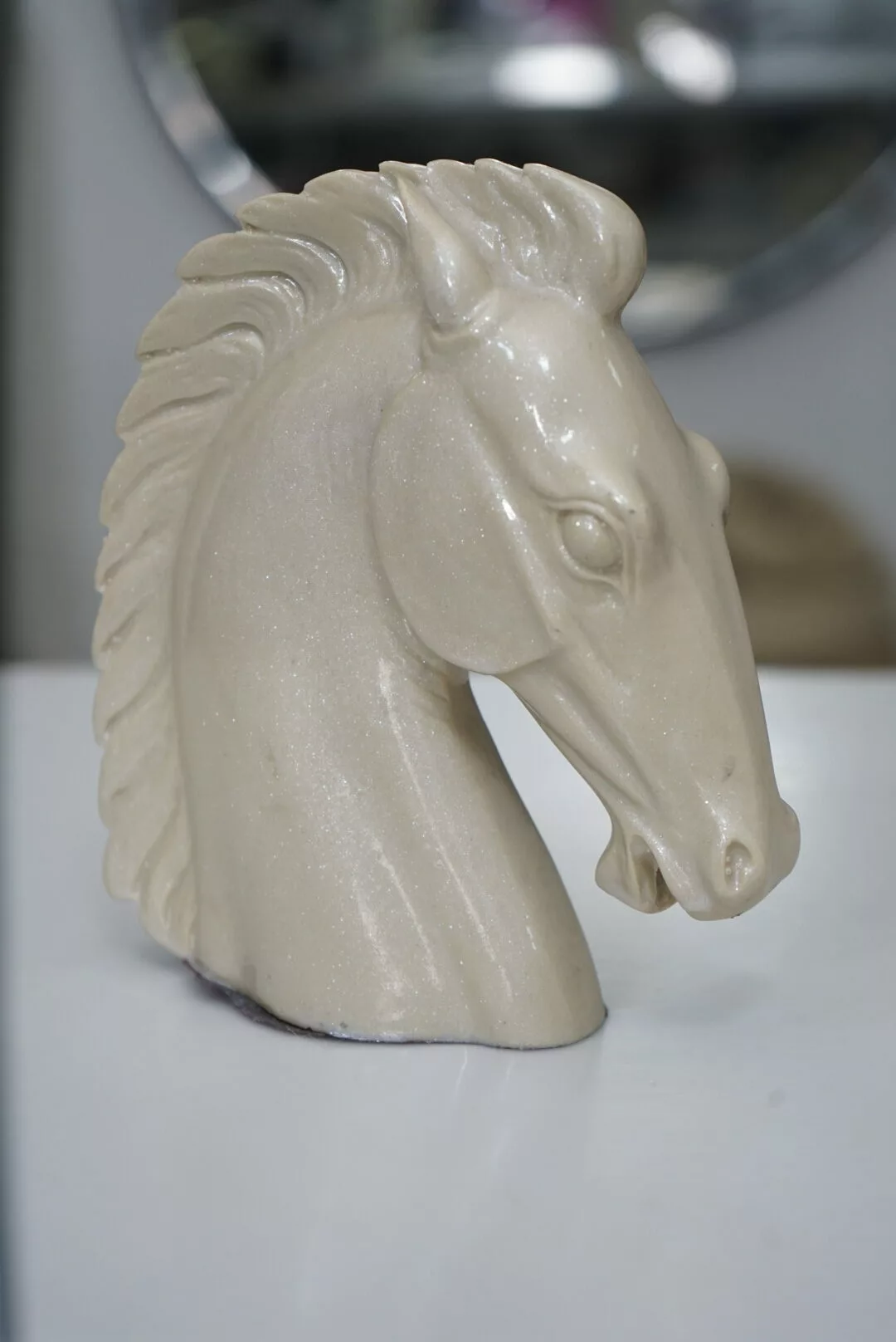 Sculpture tête de cheval en résine beige – Décoration élégante