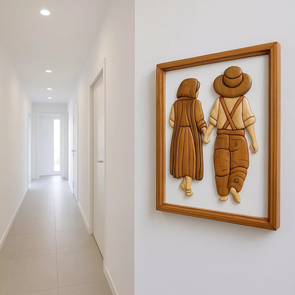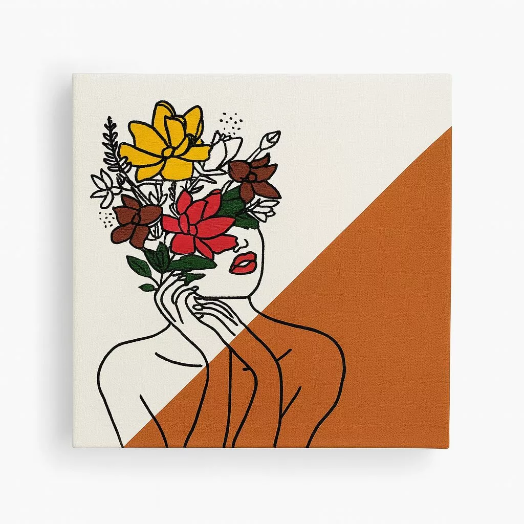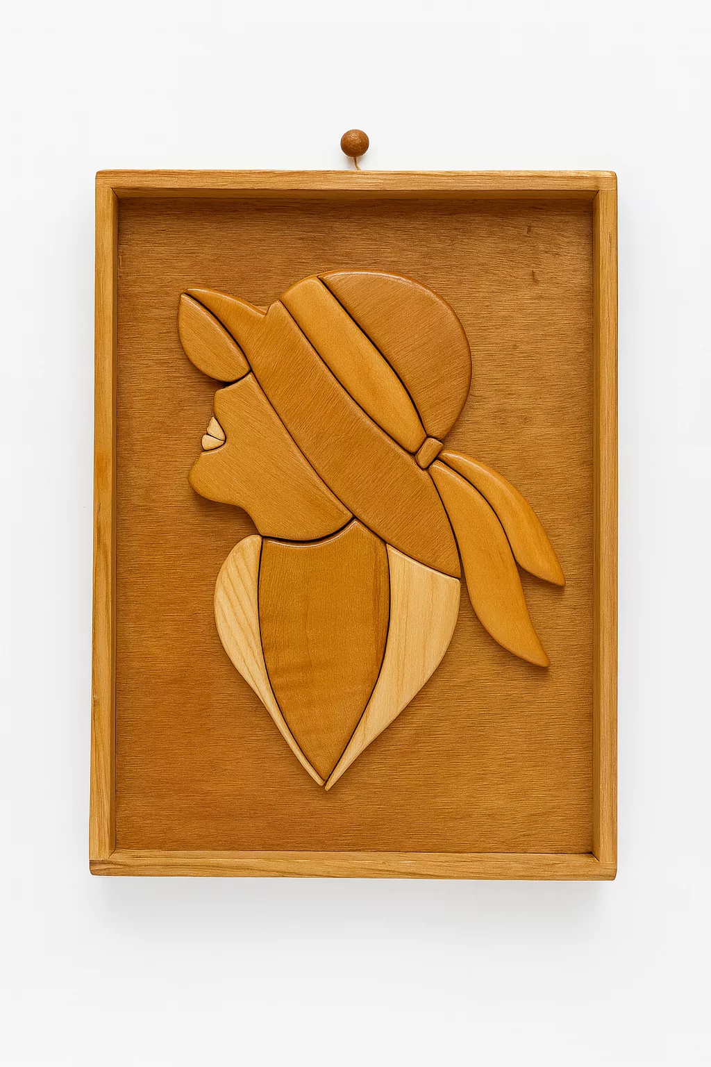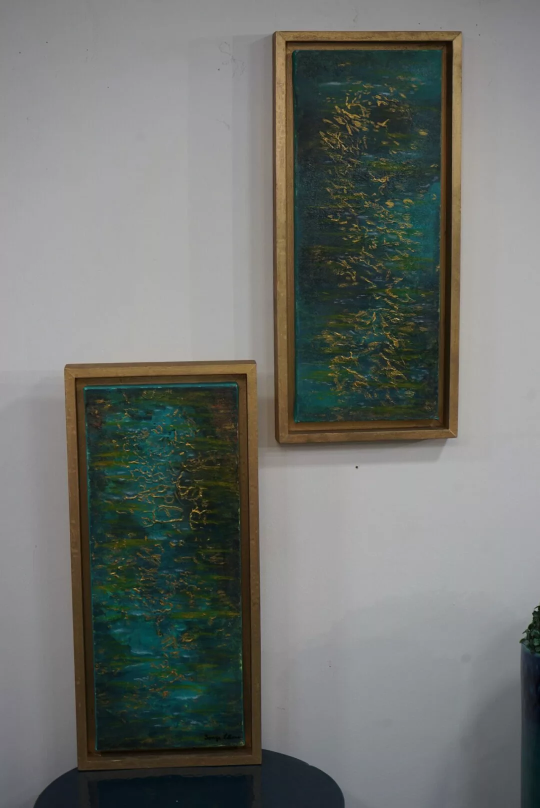 Tableau artistique moderne – Croquis coloré sous verre avec encadrement bois façon caisson américain