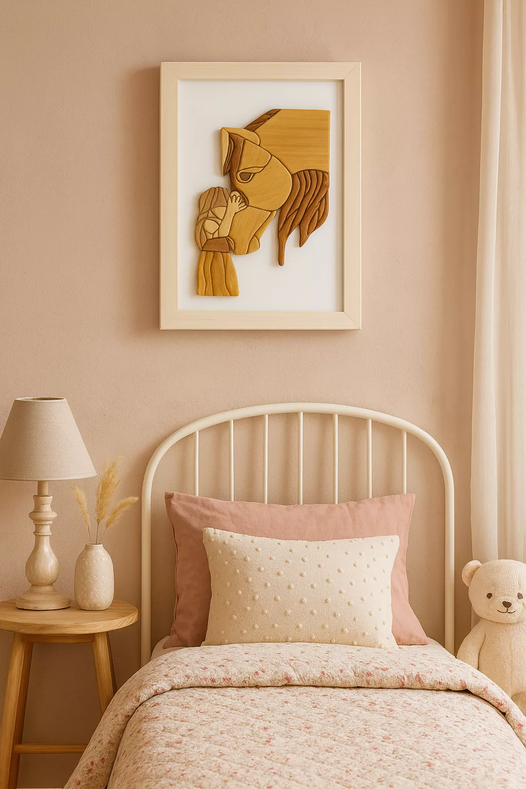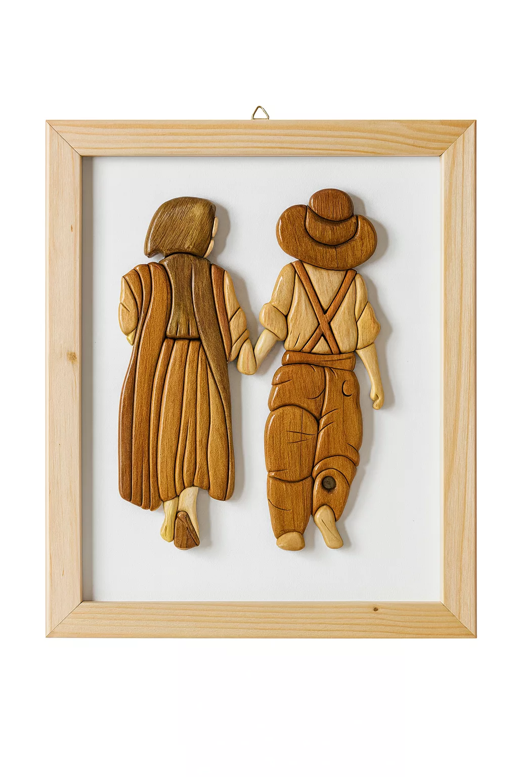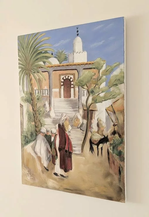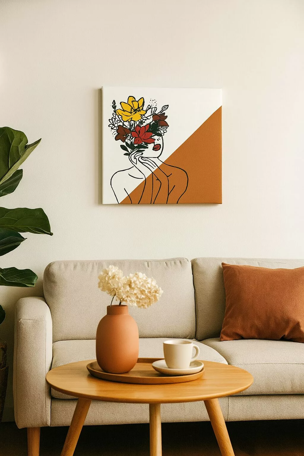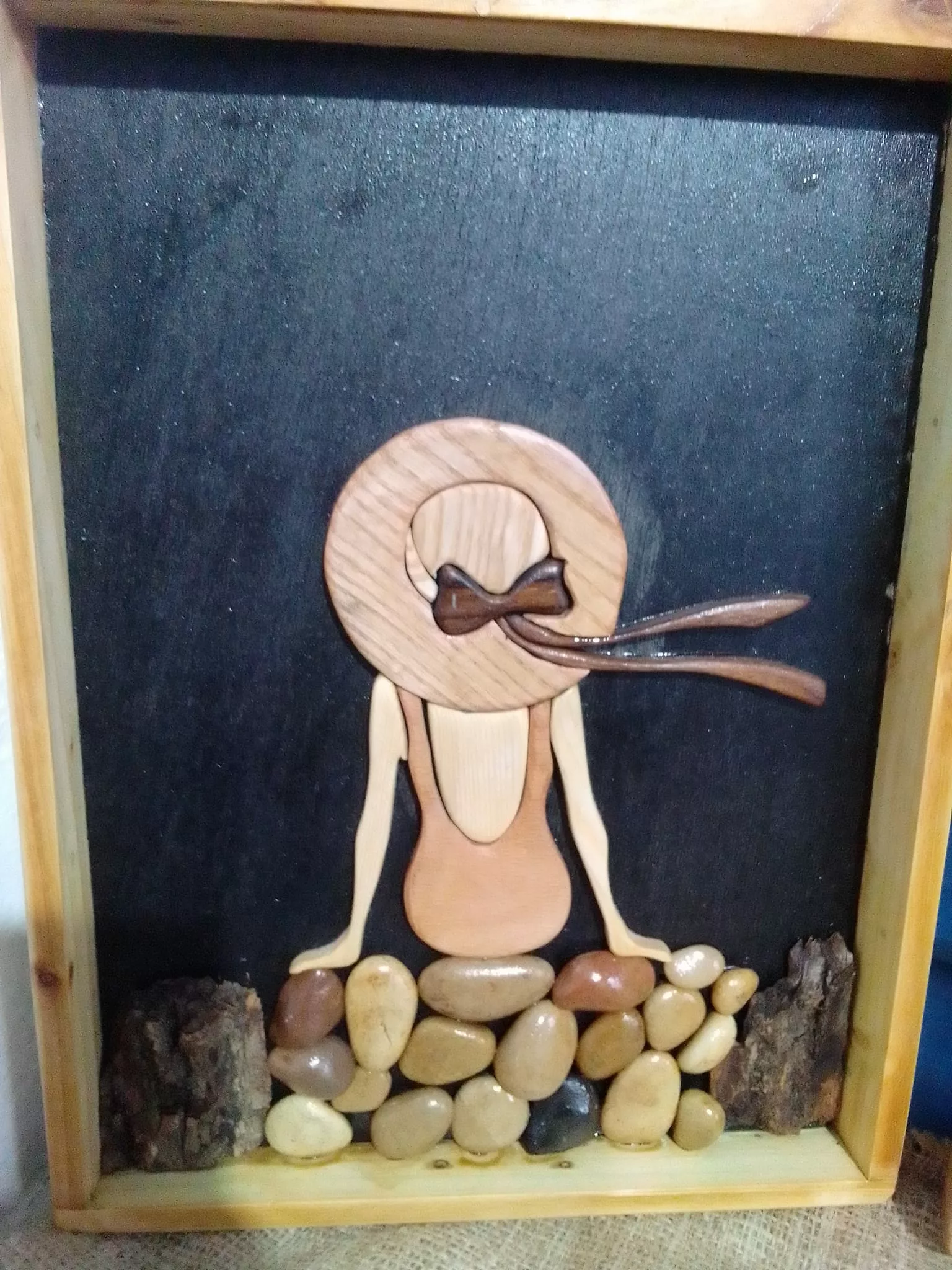 Tableau artistique moderne – Croquis coloré sous verre avec encadrement bois façon caisson américain