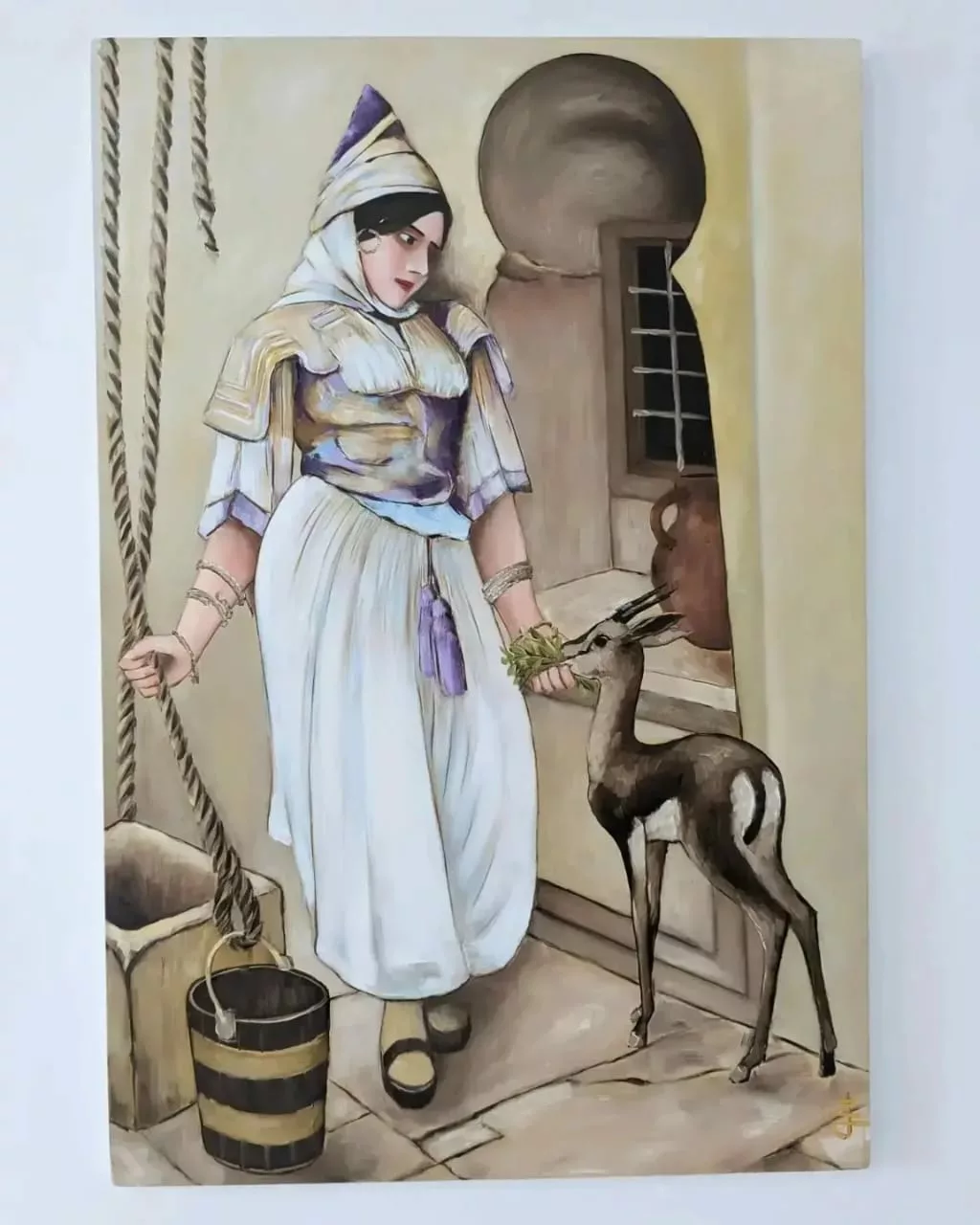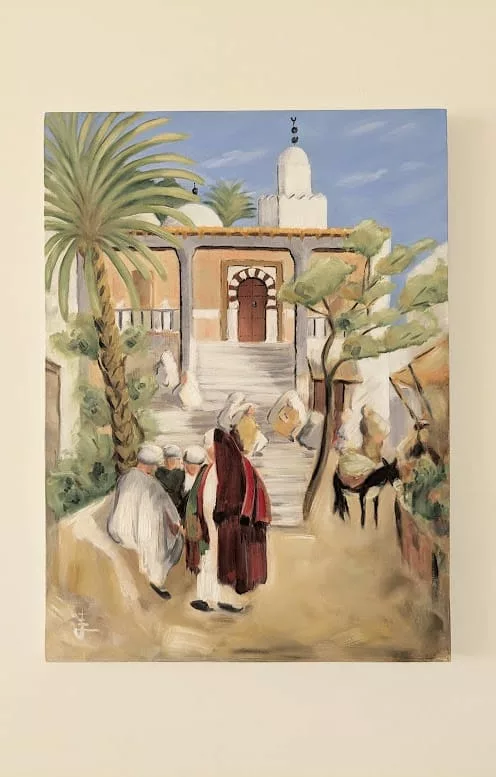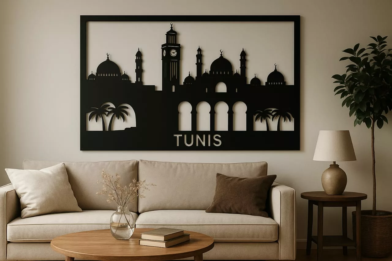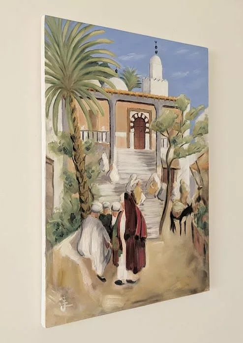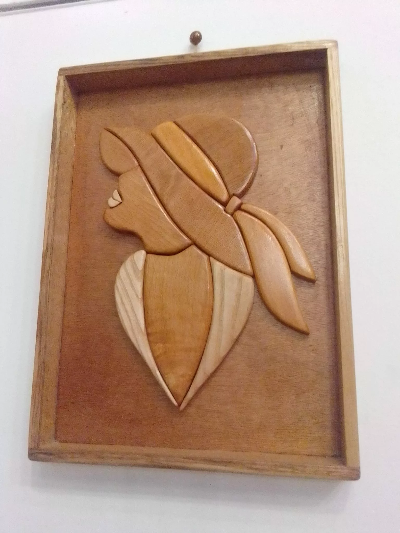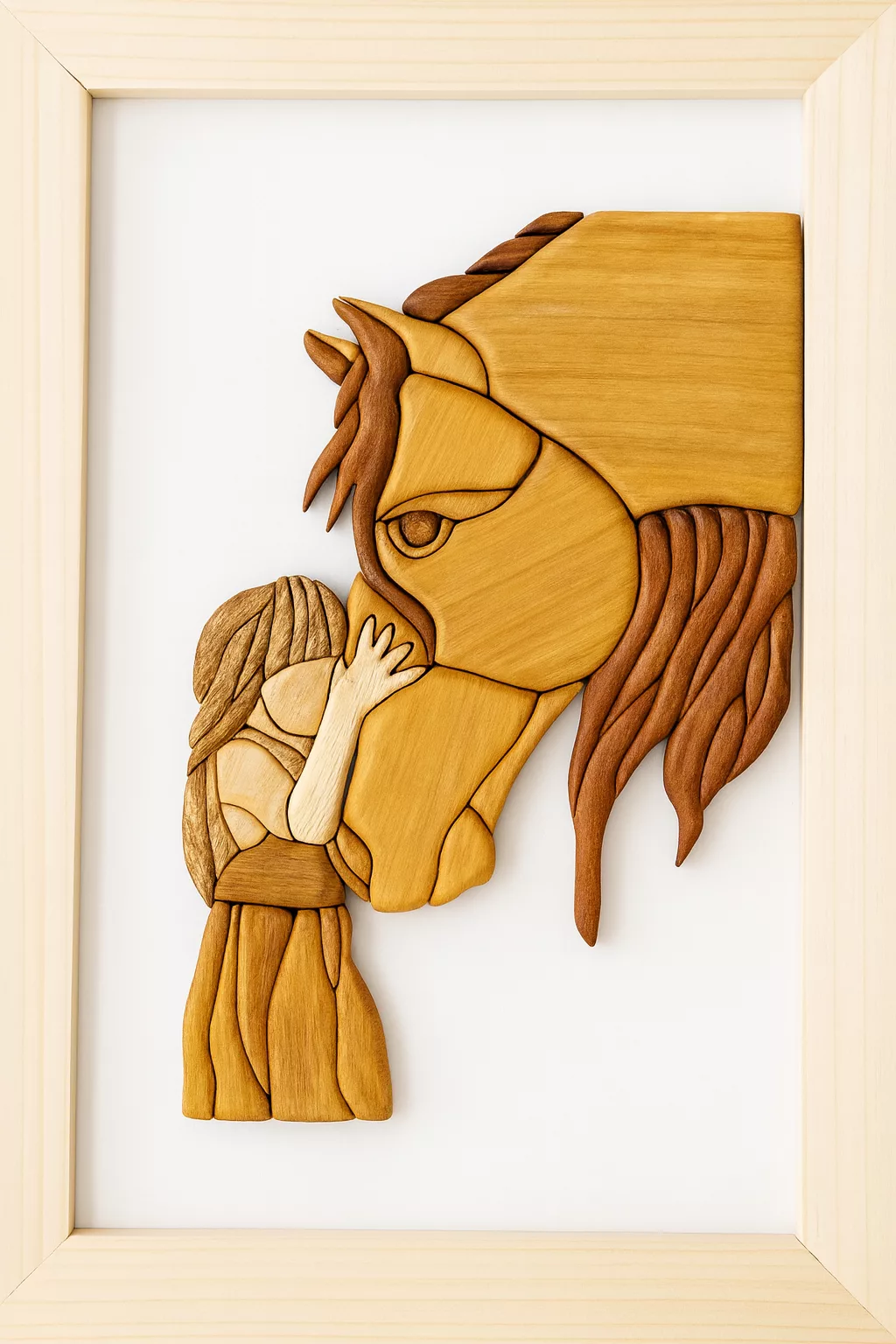 Tableau artistique moderne – Croquis coloré sous verre avec encadrement bois façon caisson américain
