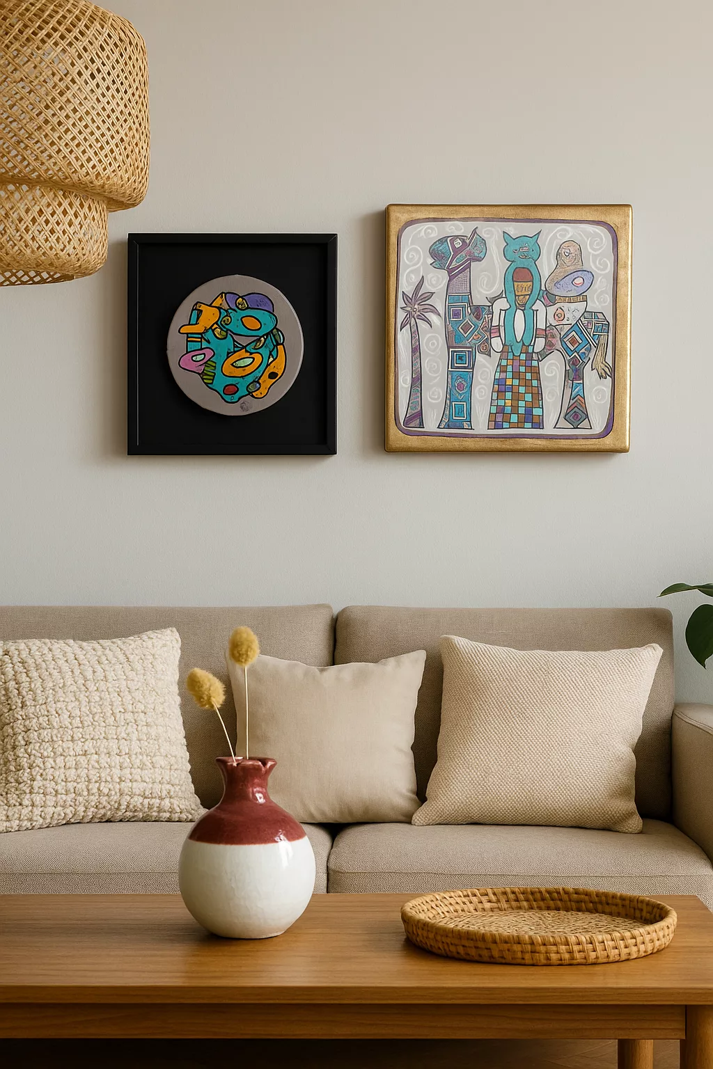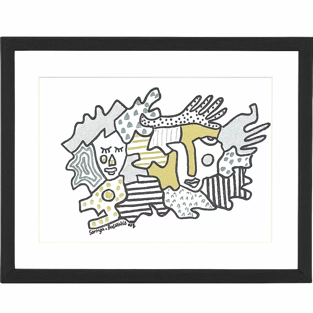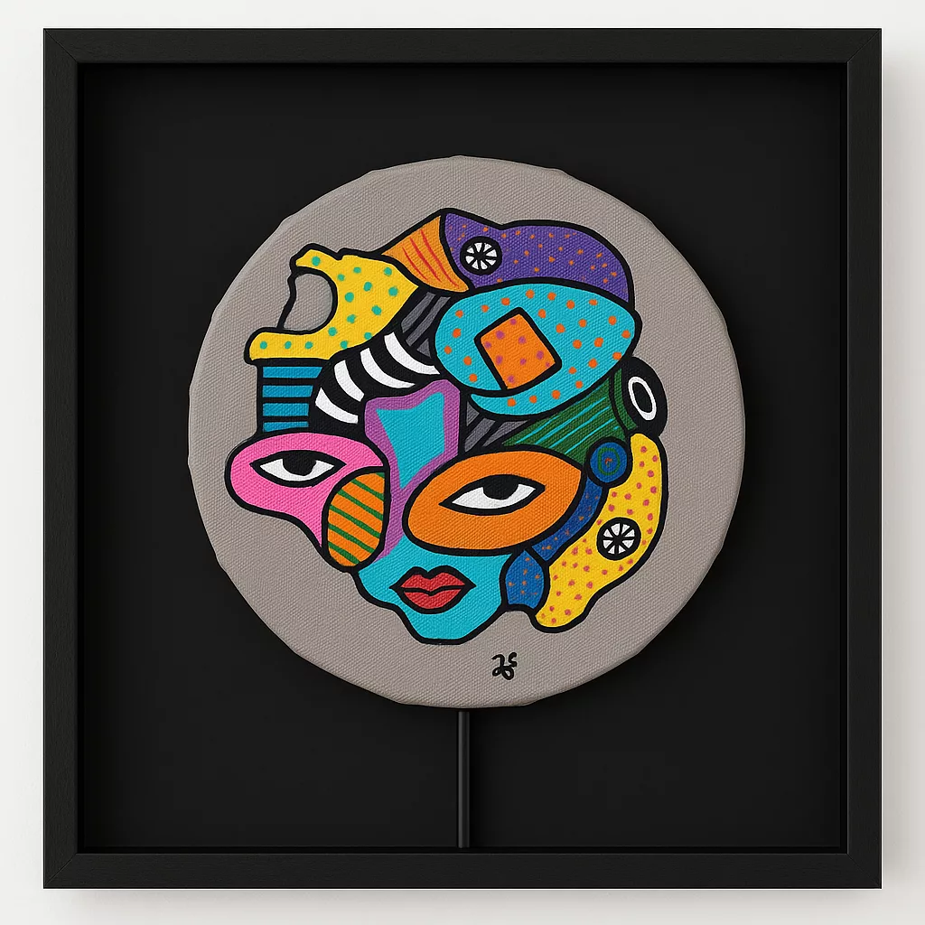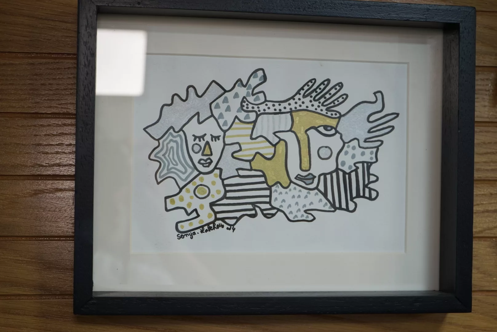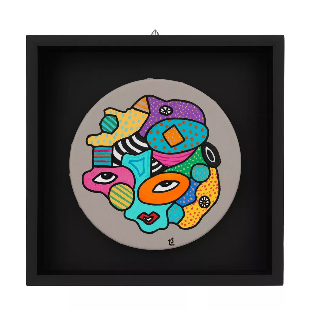 “ Poissons abstraits en noir et blanc ” – Tableau encadré sous-verre, caisson bois
