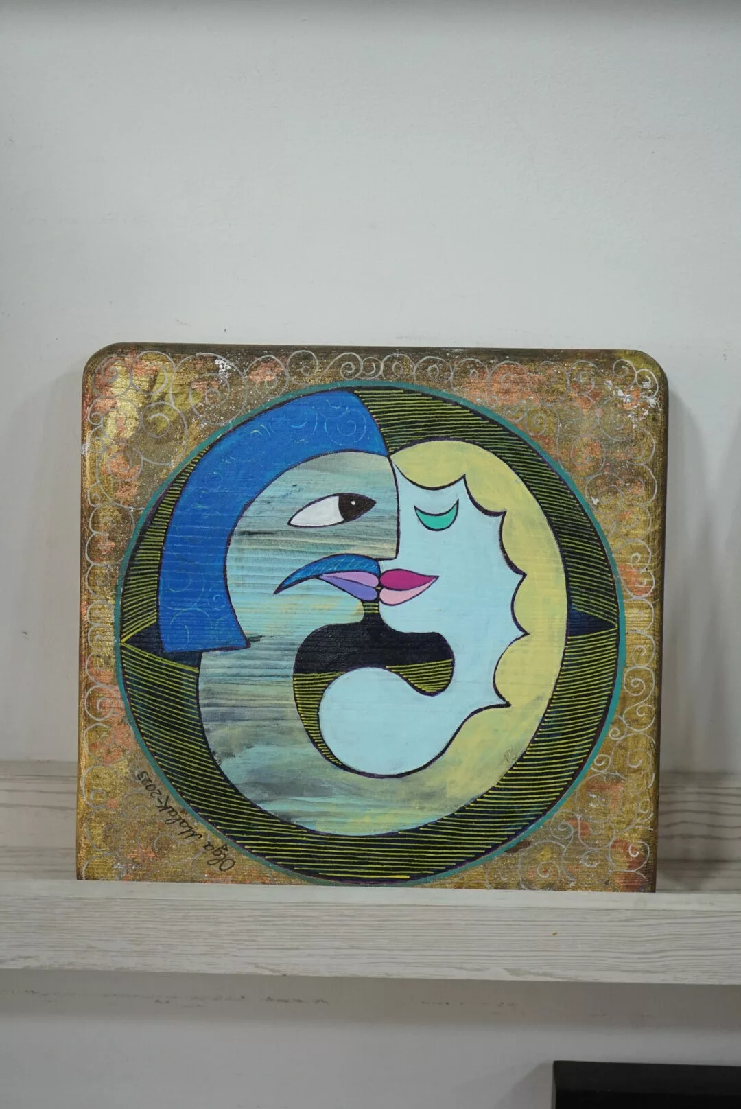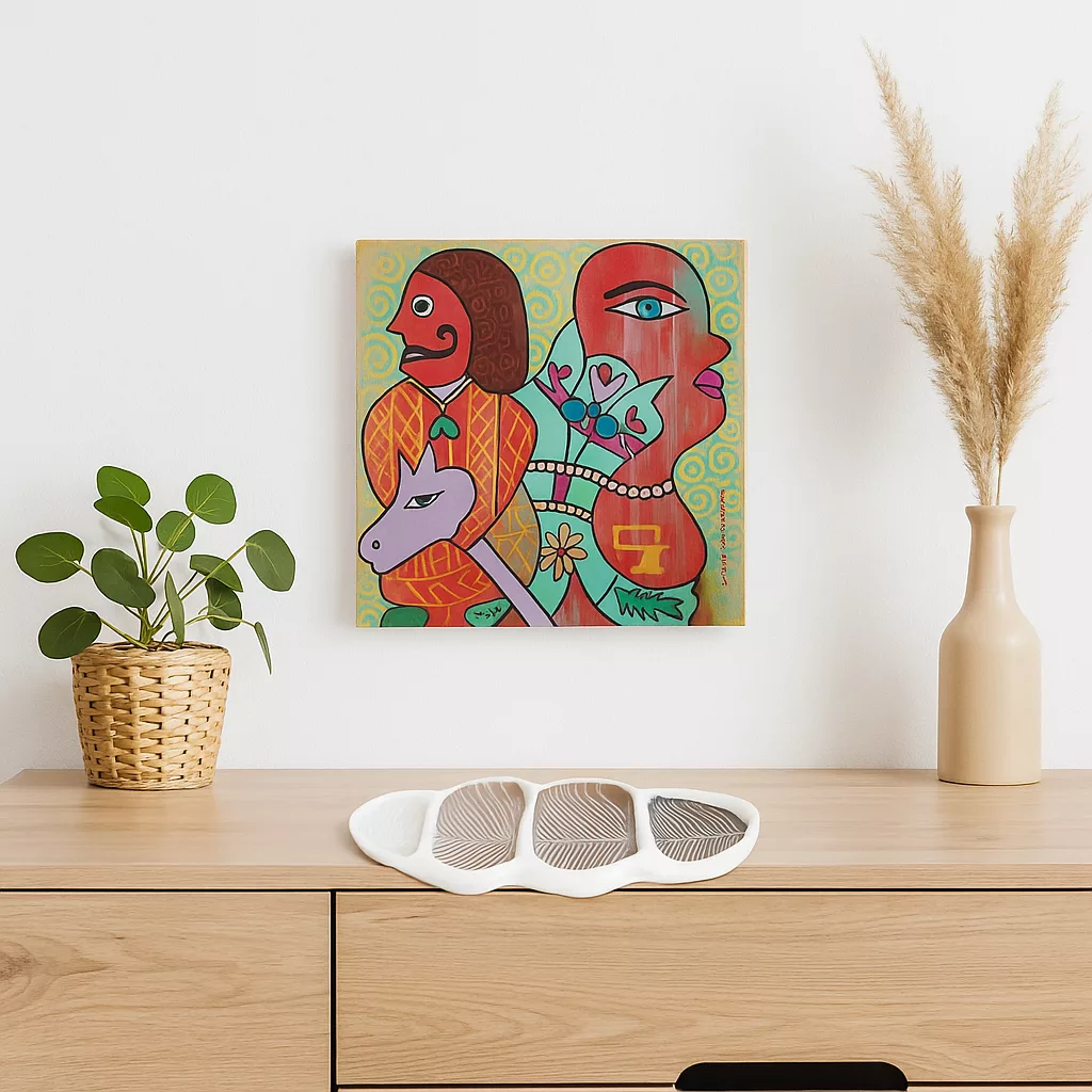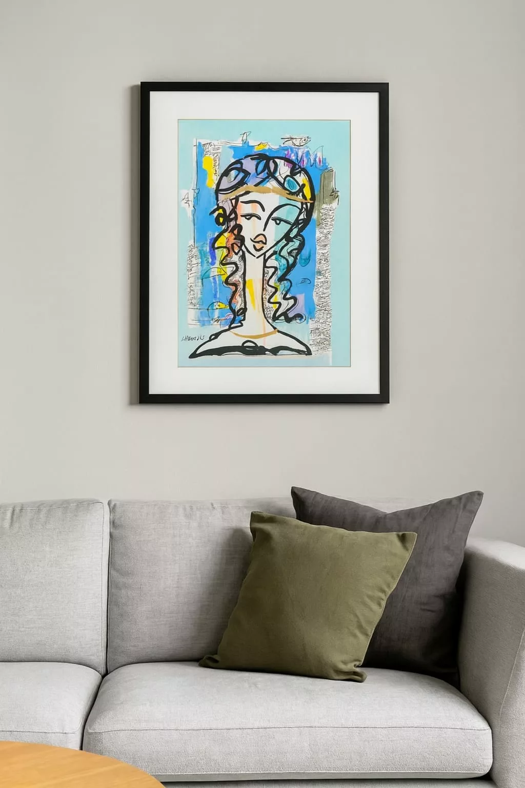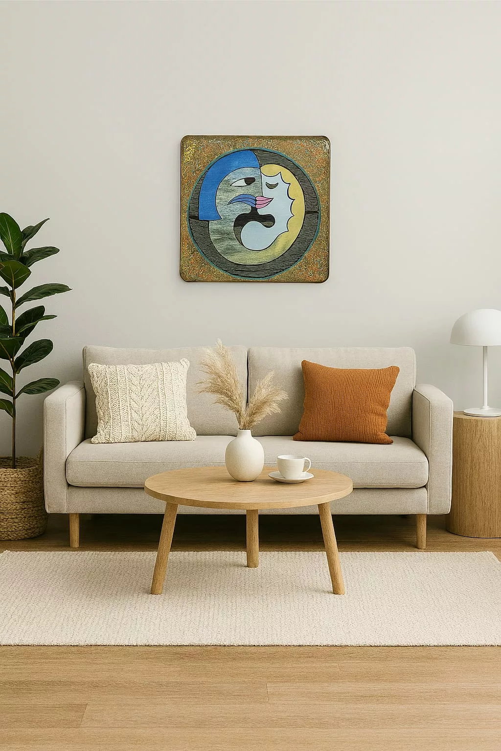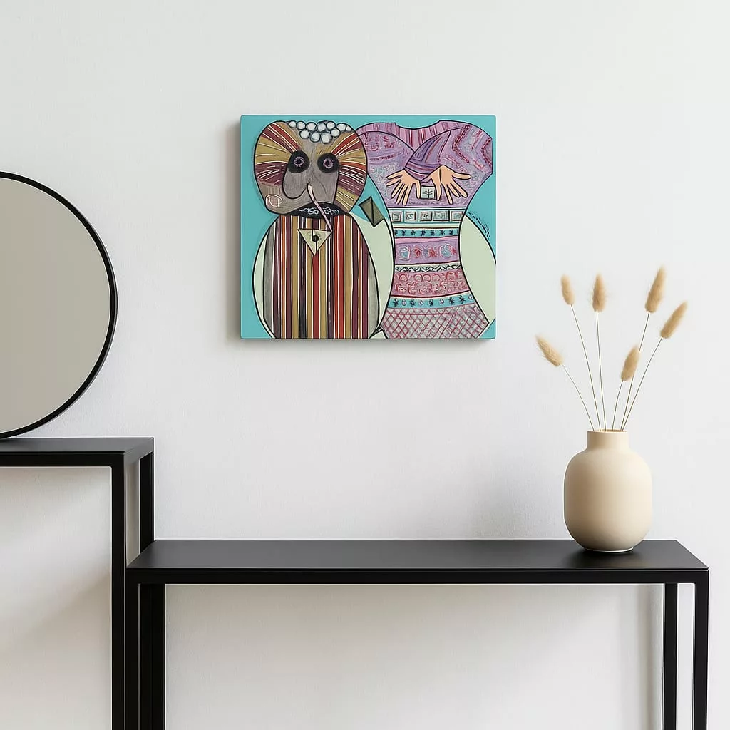 “ Poissons abstraits en noir et blanc ” – Tableau encadré sous-verre, caisson bois