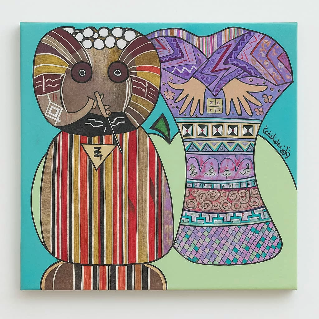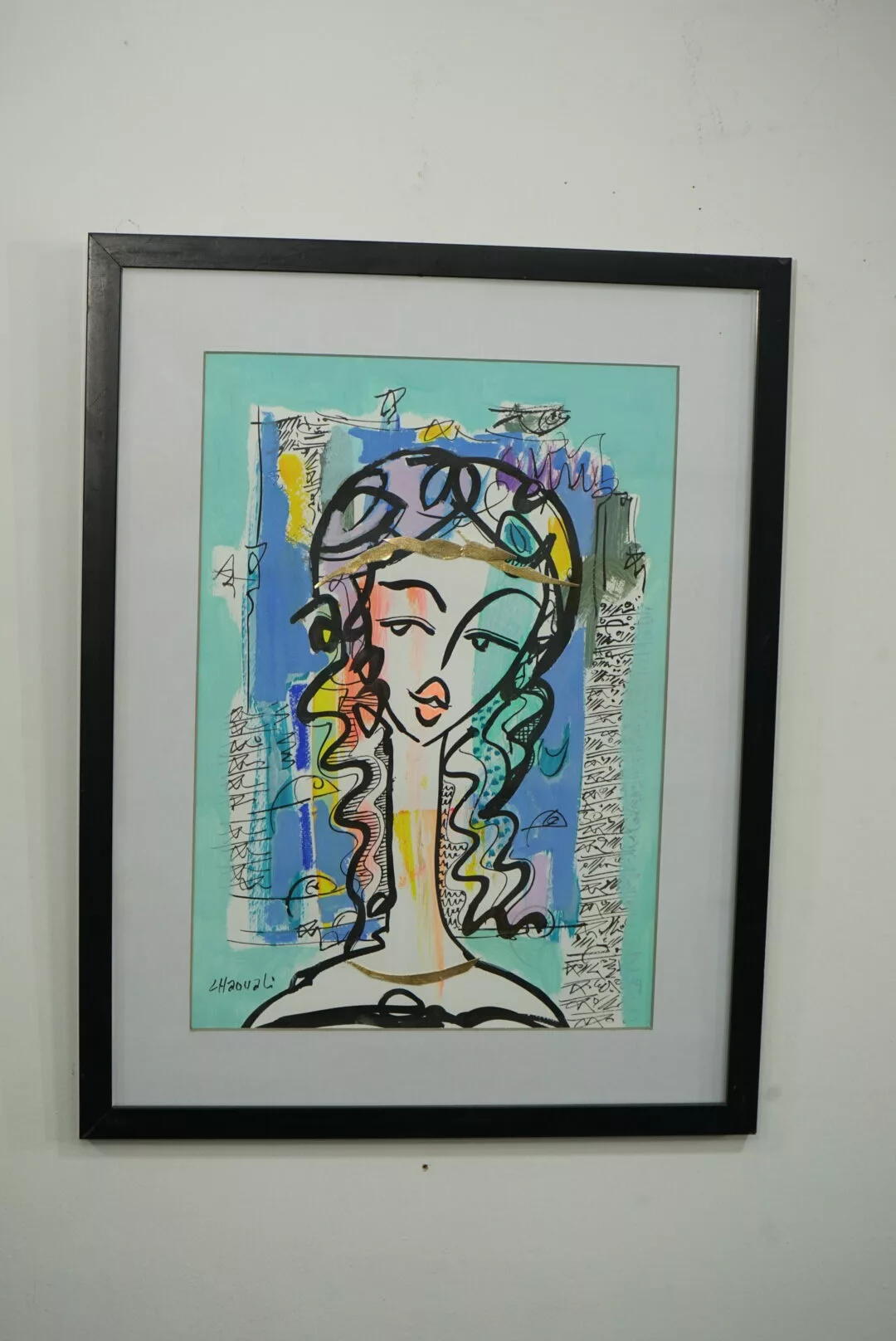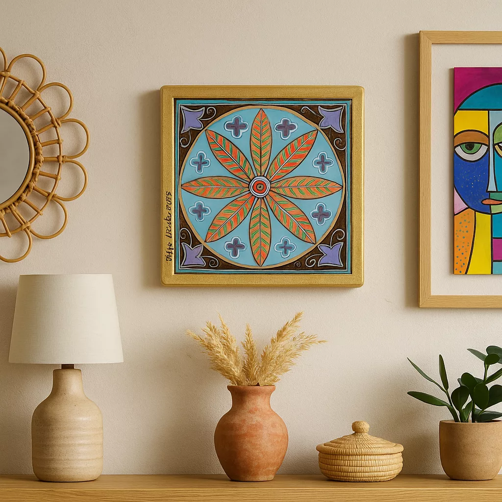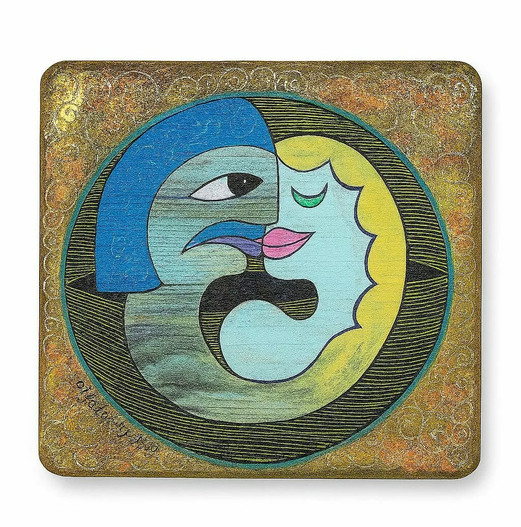 “ Poissons abstraits en noir et blanc ” – Tableau encadré sous-verre, caisson bois