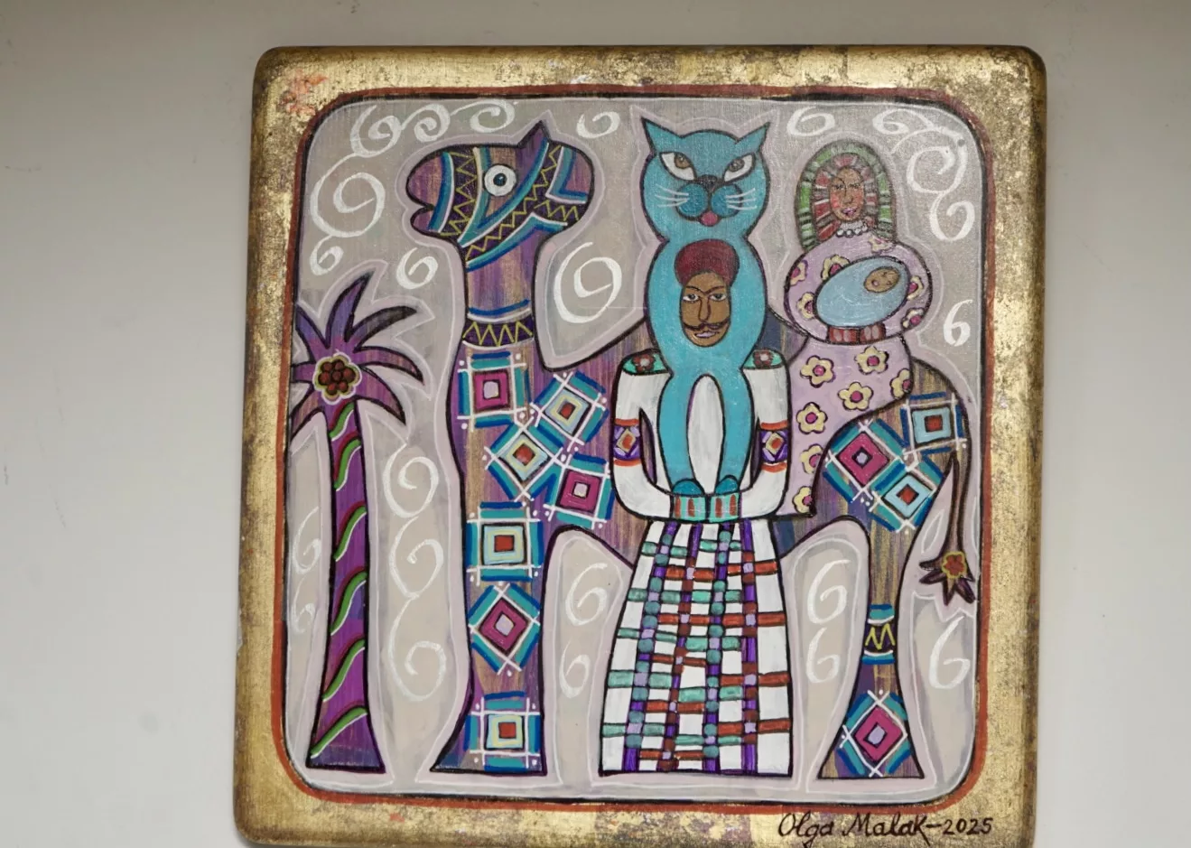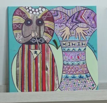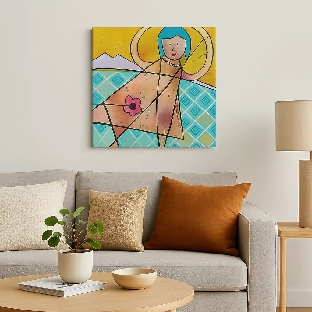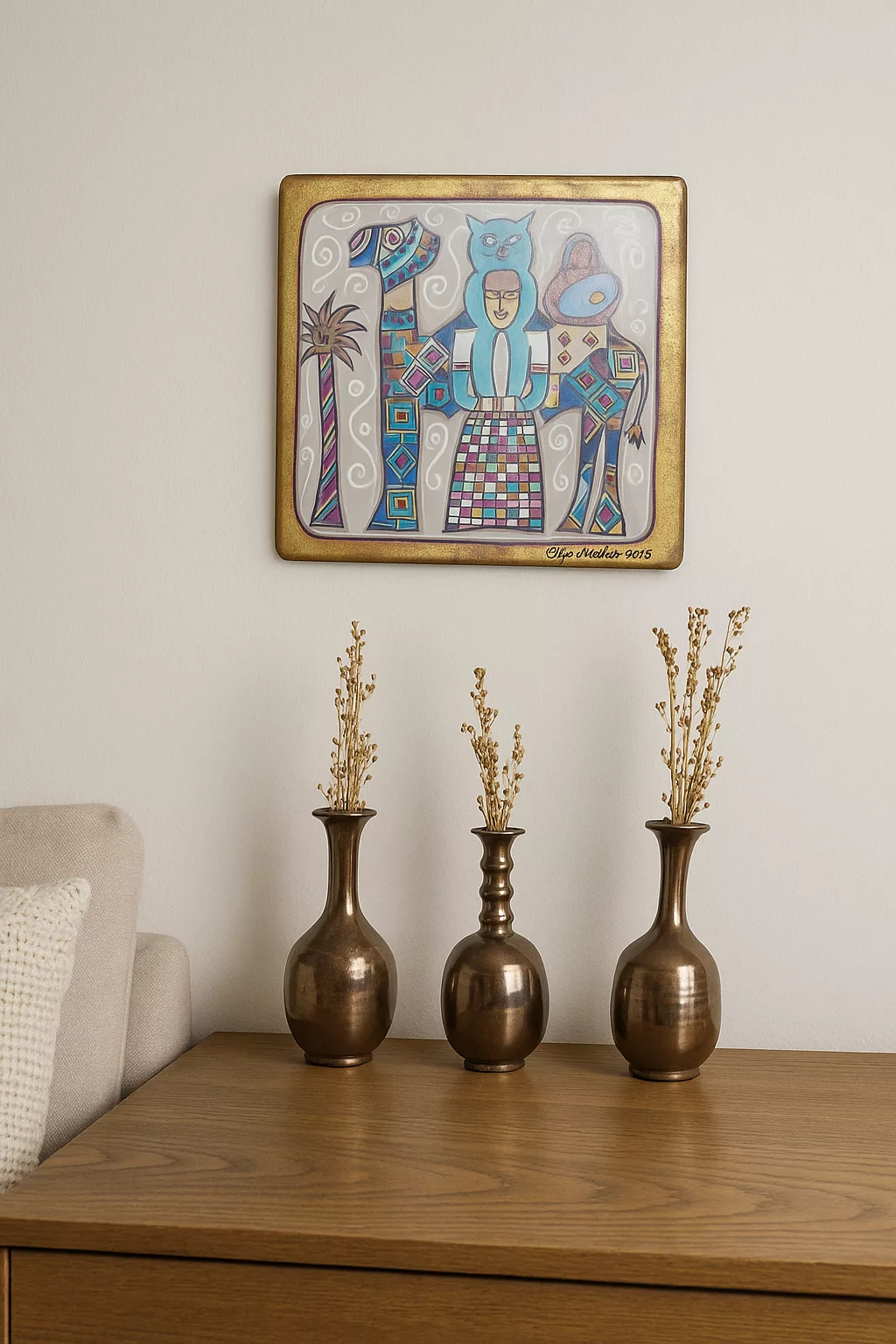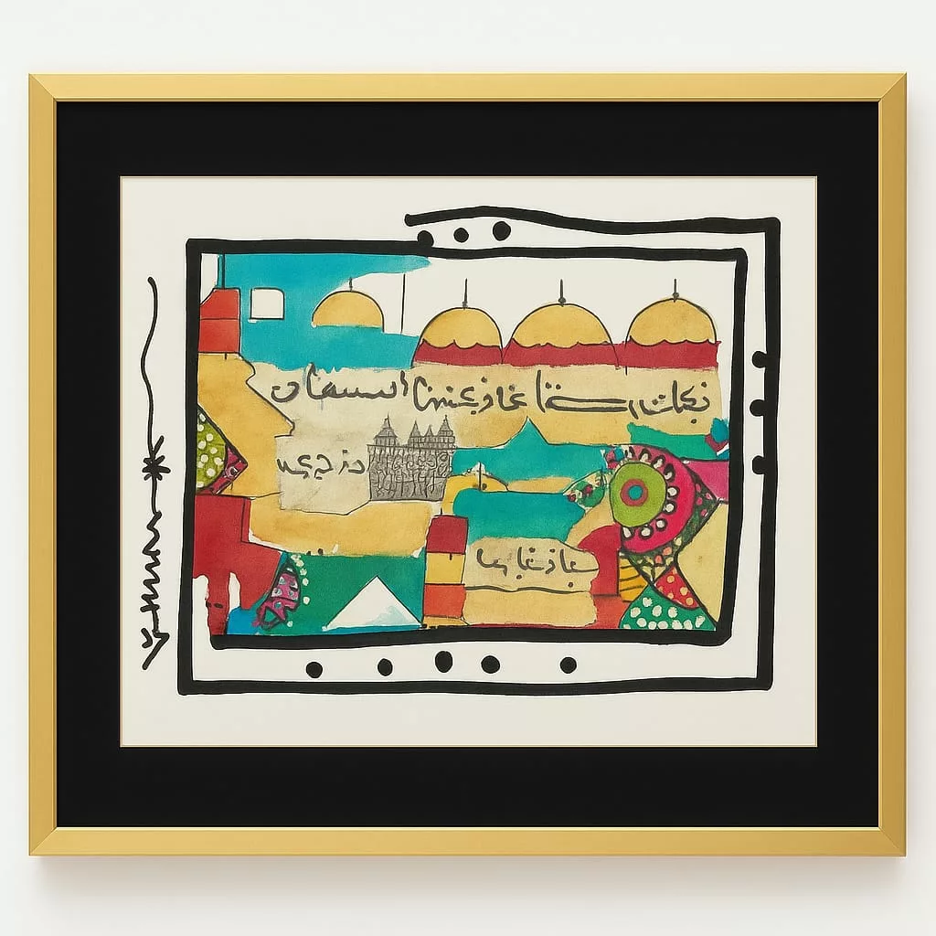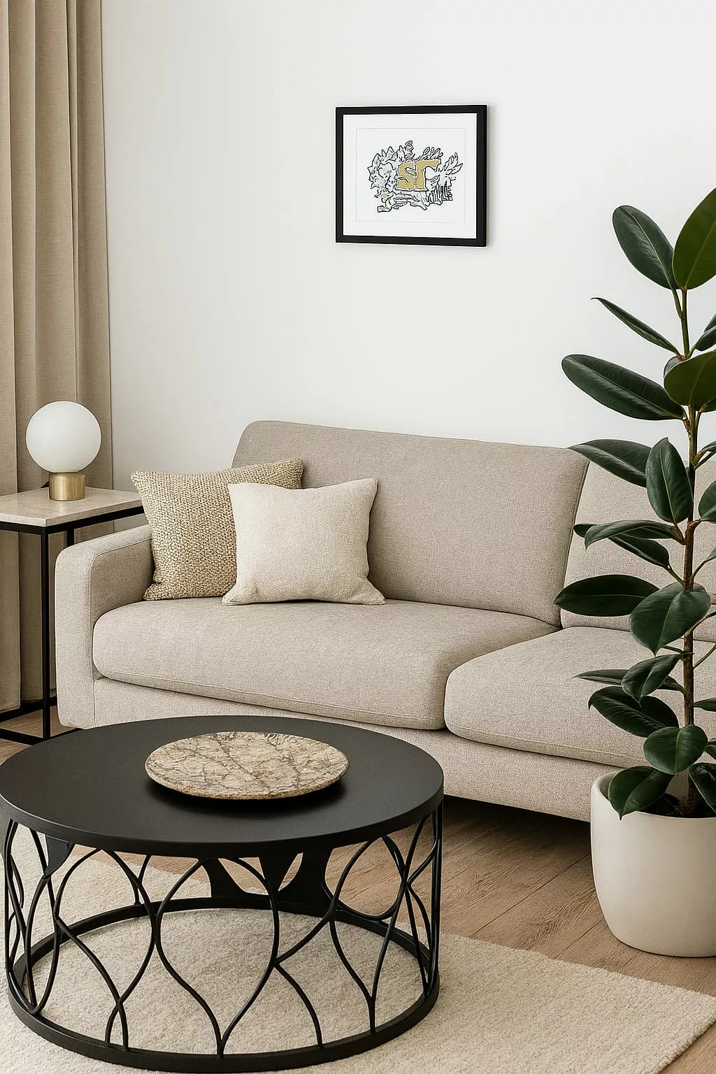 “ Poissons abstraits en noir et blanc ” – Tableau encadré sous-verre, caisson bois