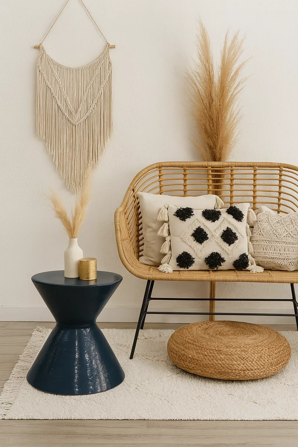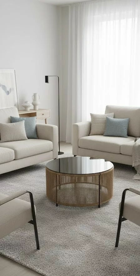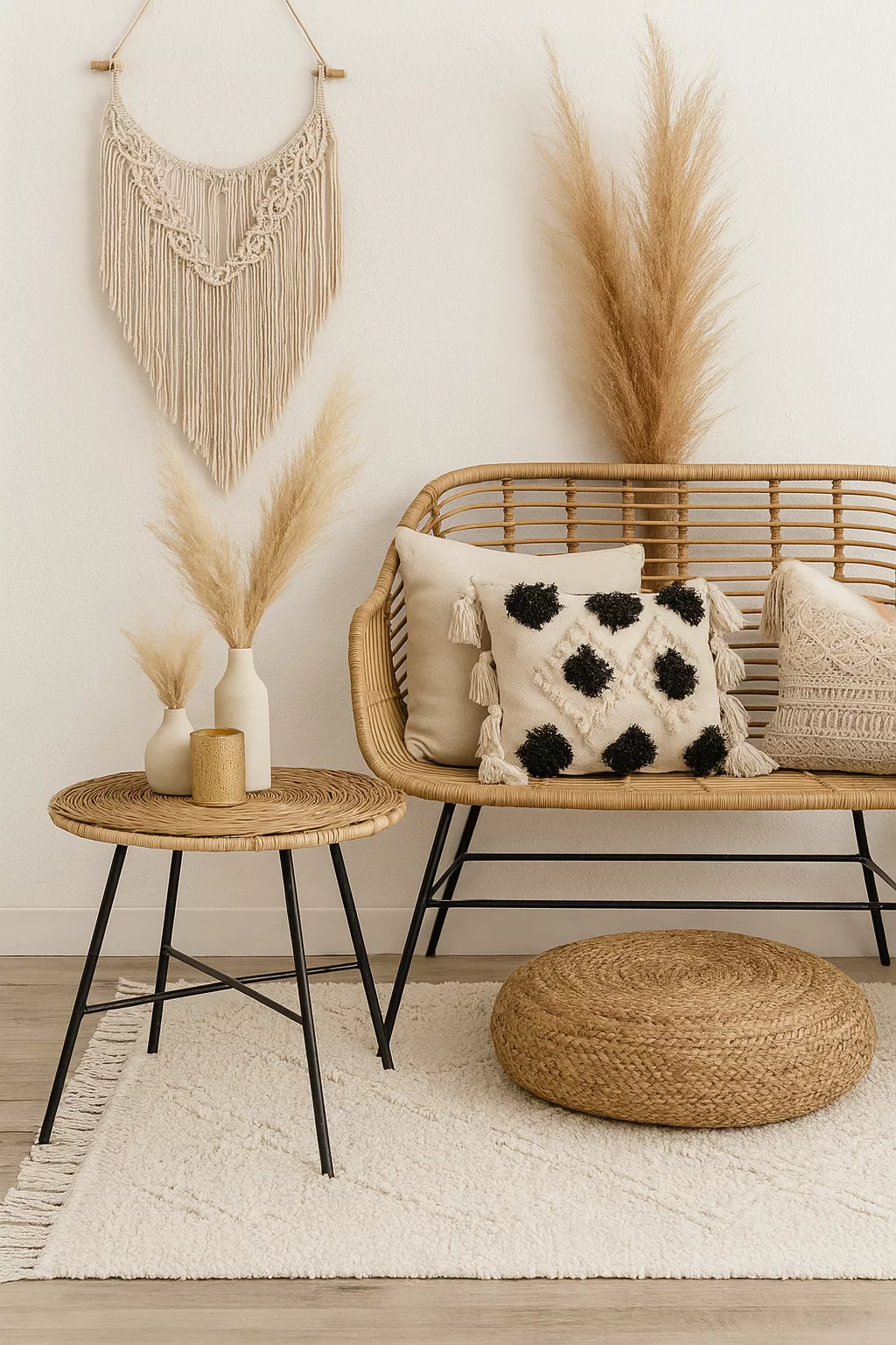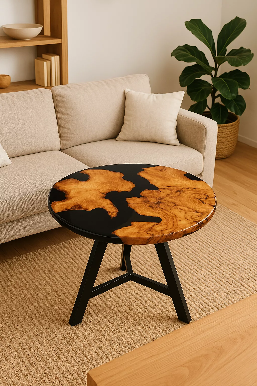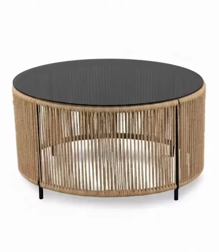 Table Basse “Riviera” – Corde Naturelle & Plateau Noir