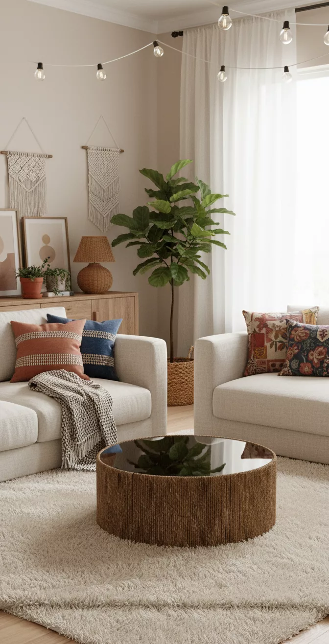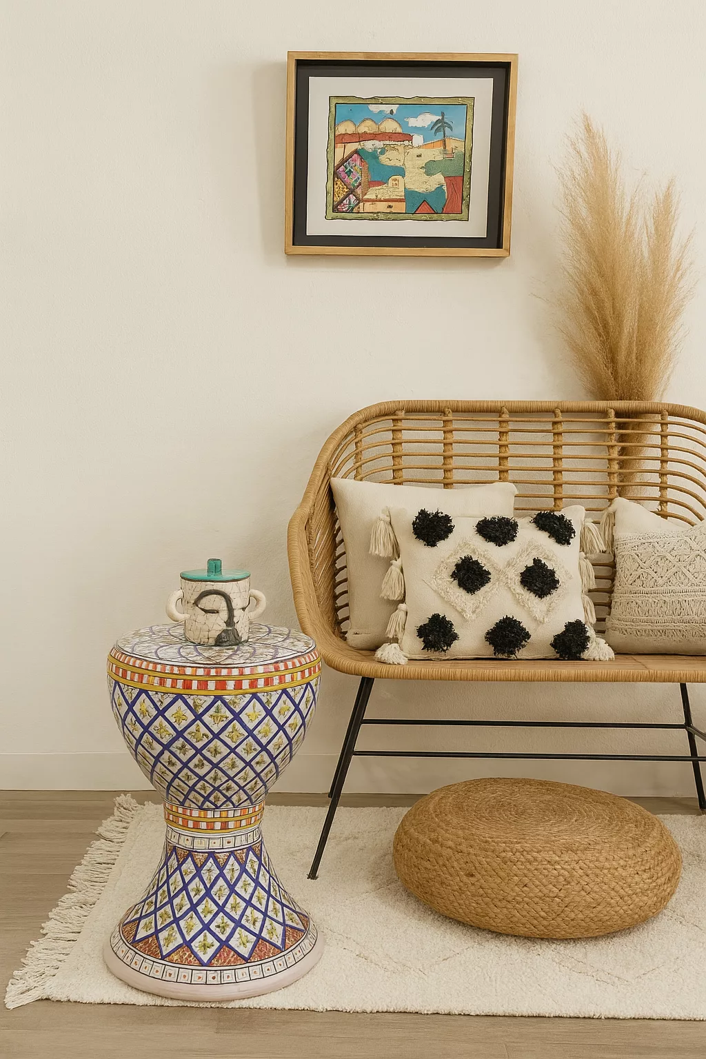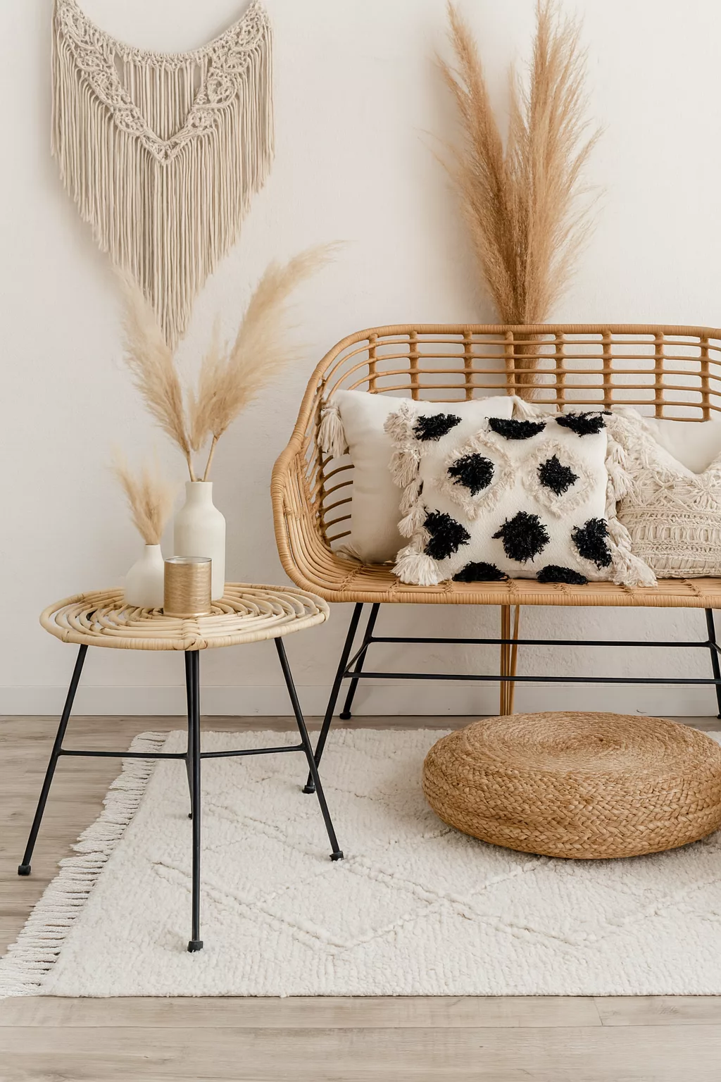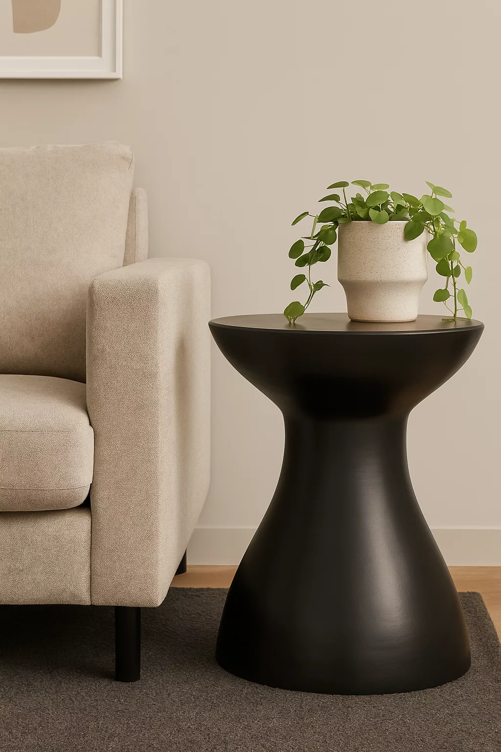 Table Basse “Riviera” – Corde Naturelle & Plateau Noir