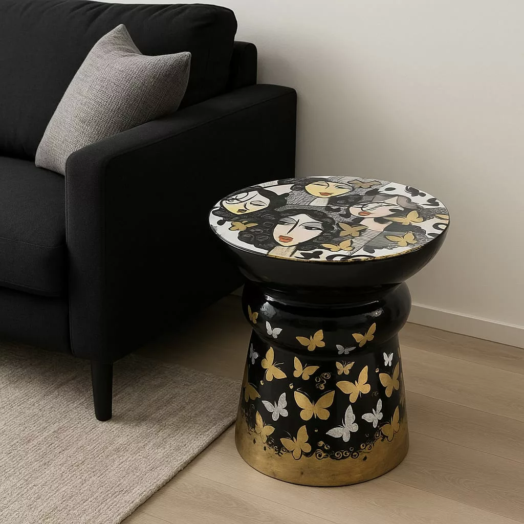 Table d’art en céramique –”Visages poétiques”- pièce artistique contemporaine