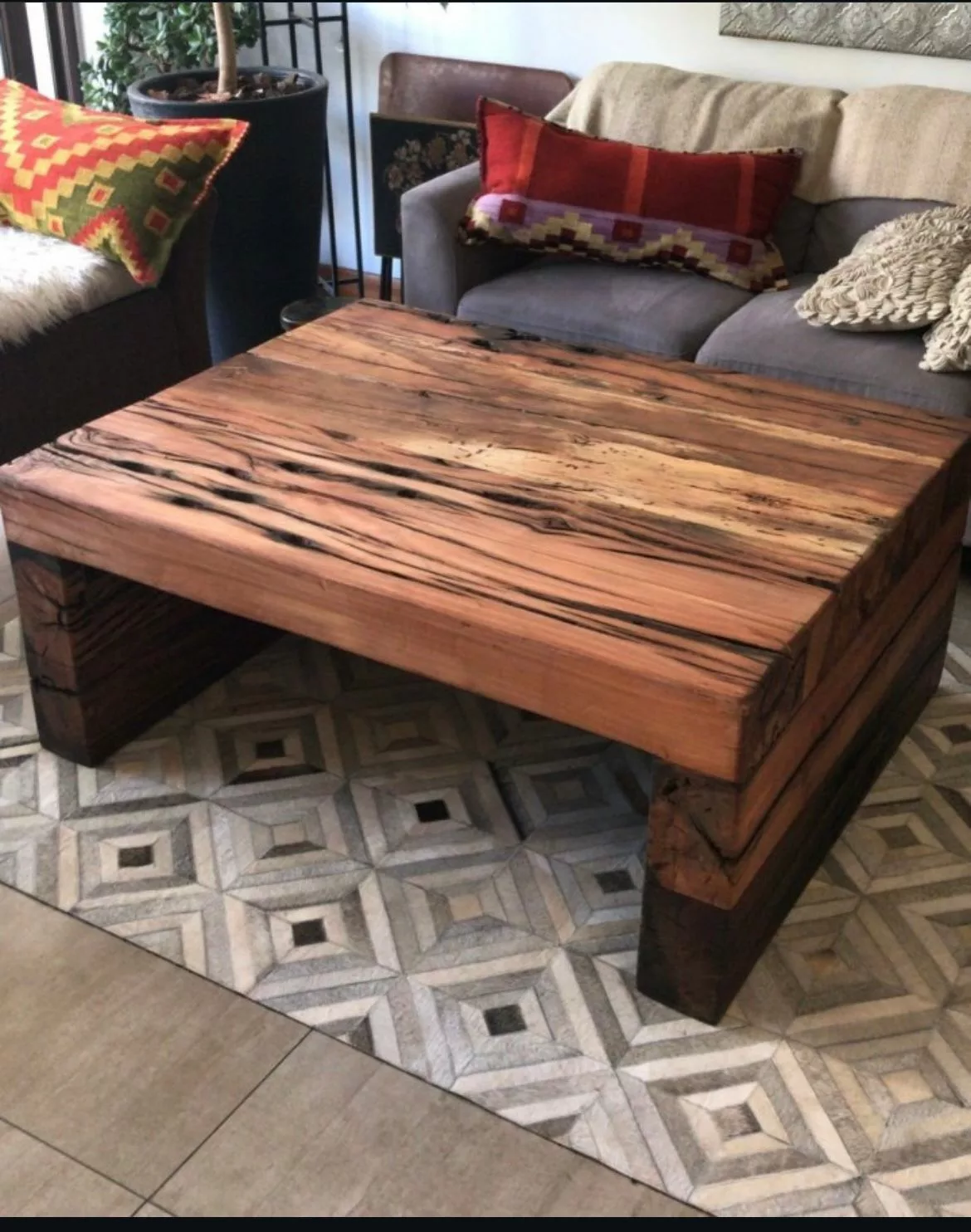 Table Basse en Bois Rouge – Design Brut & Minimaliste