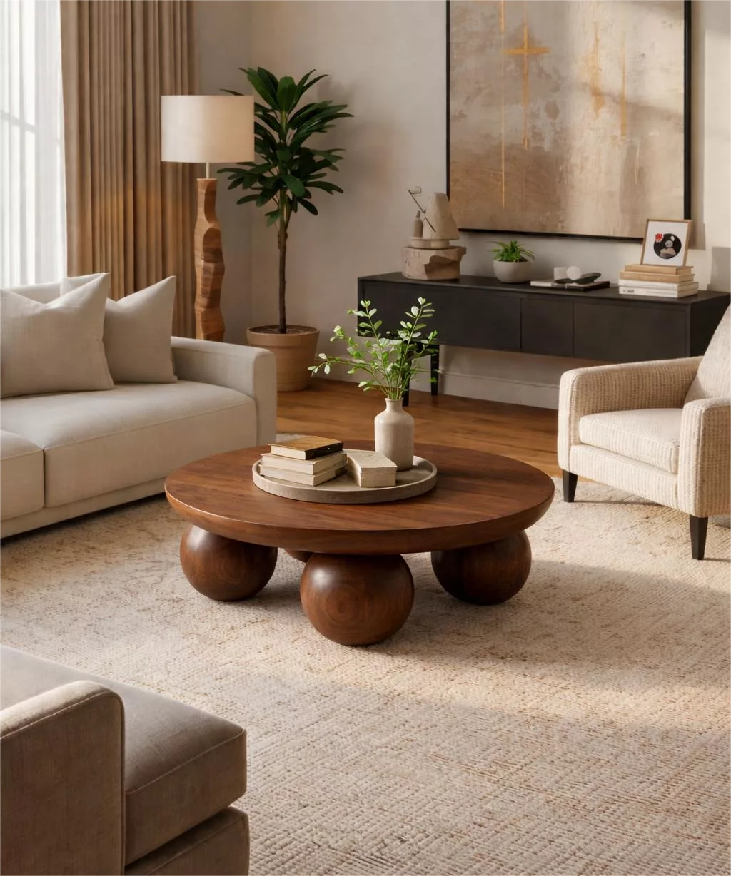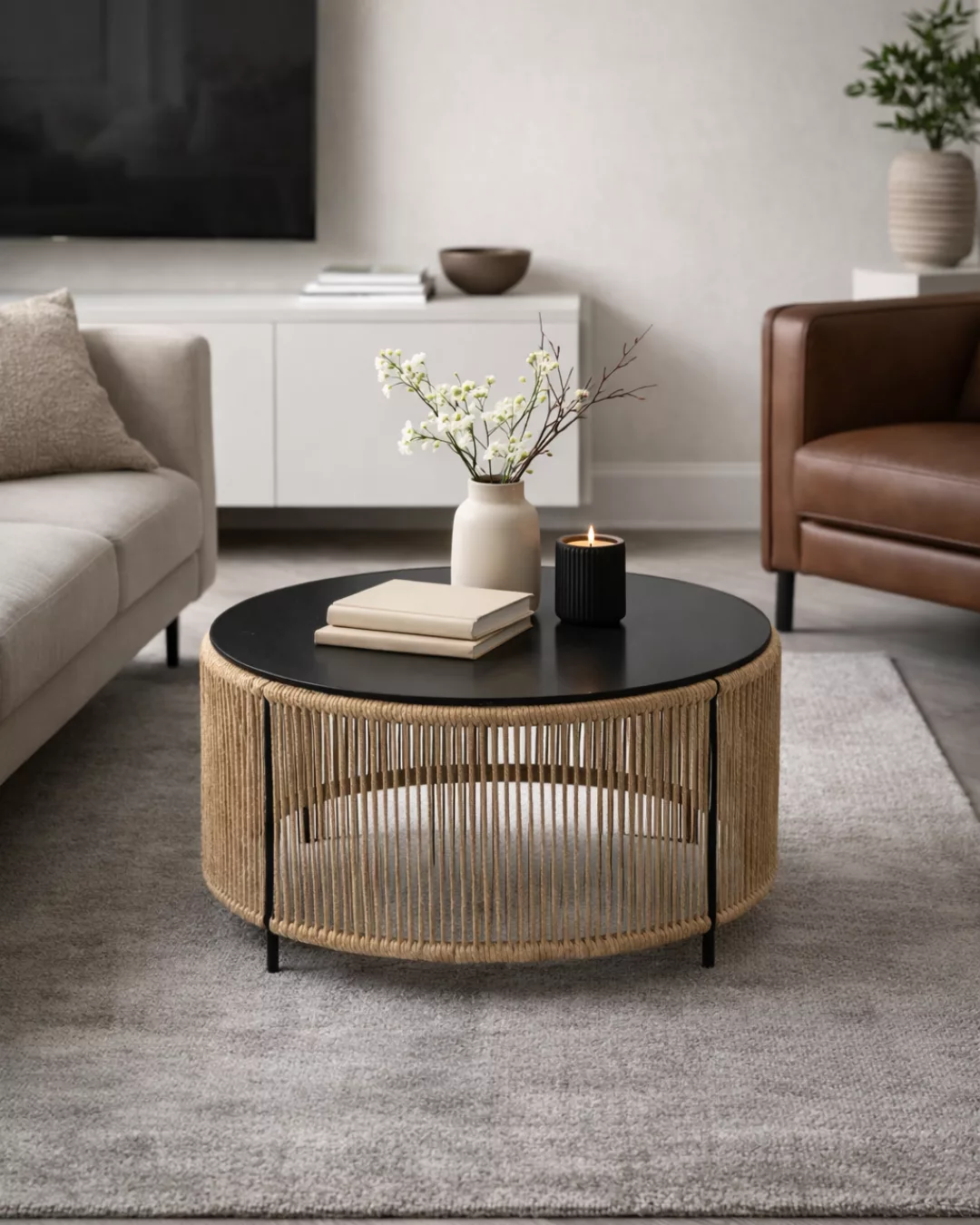 Table basse Ronde “Kalputis” – L’Art de la Nature à Votre Table