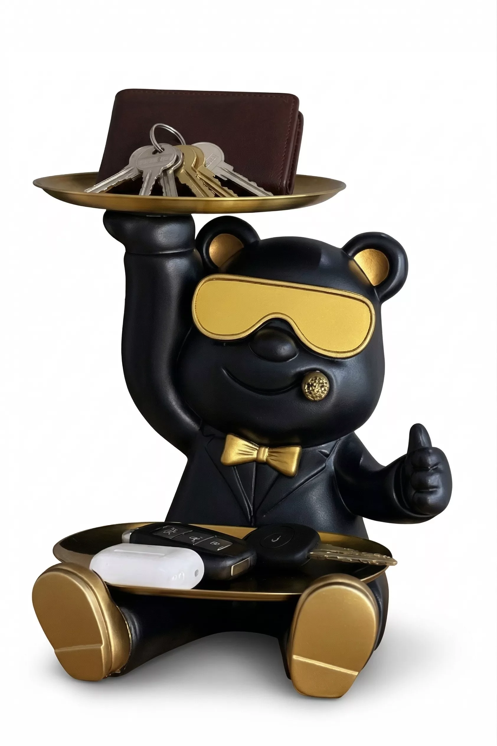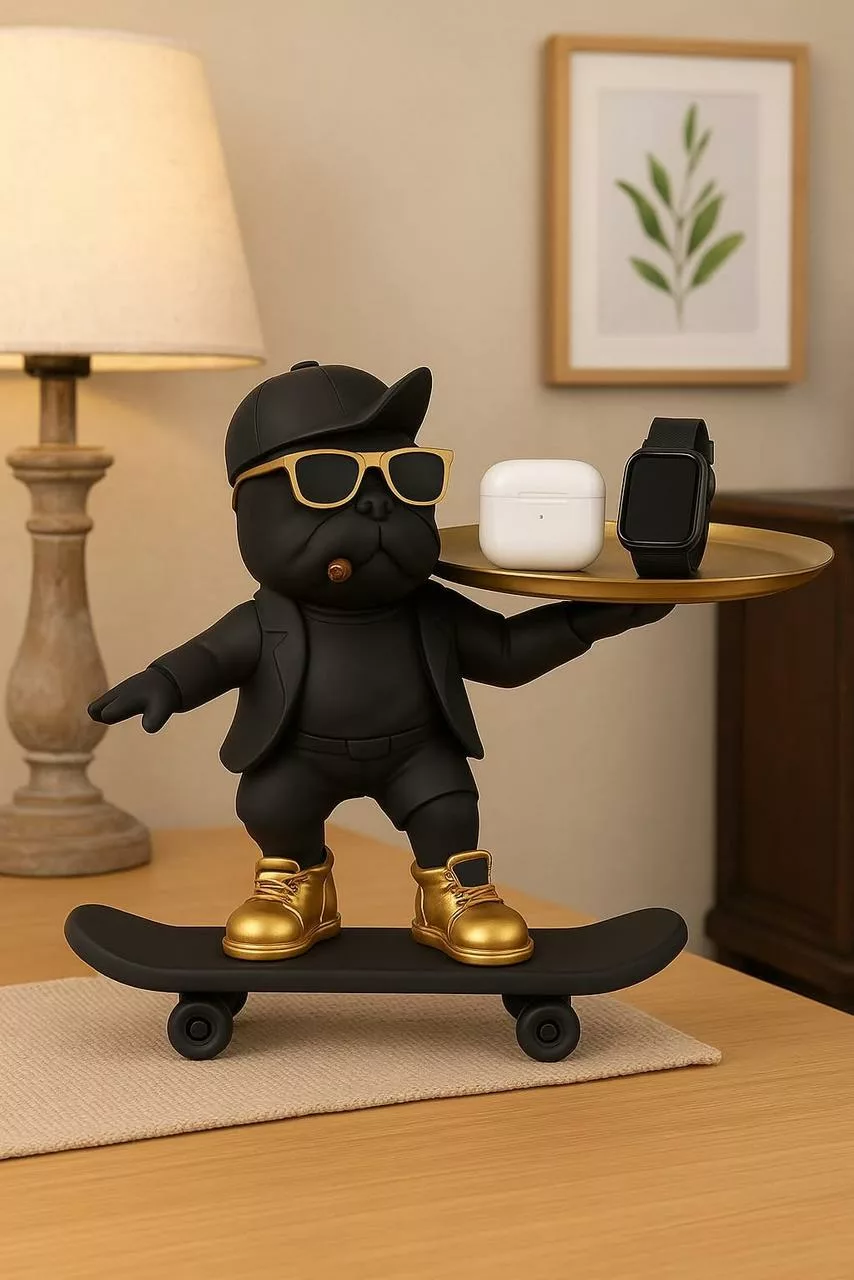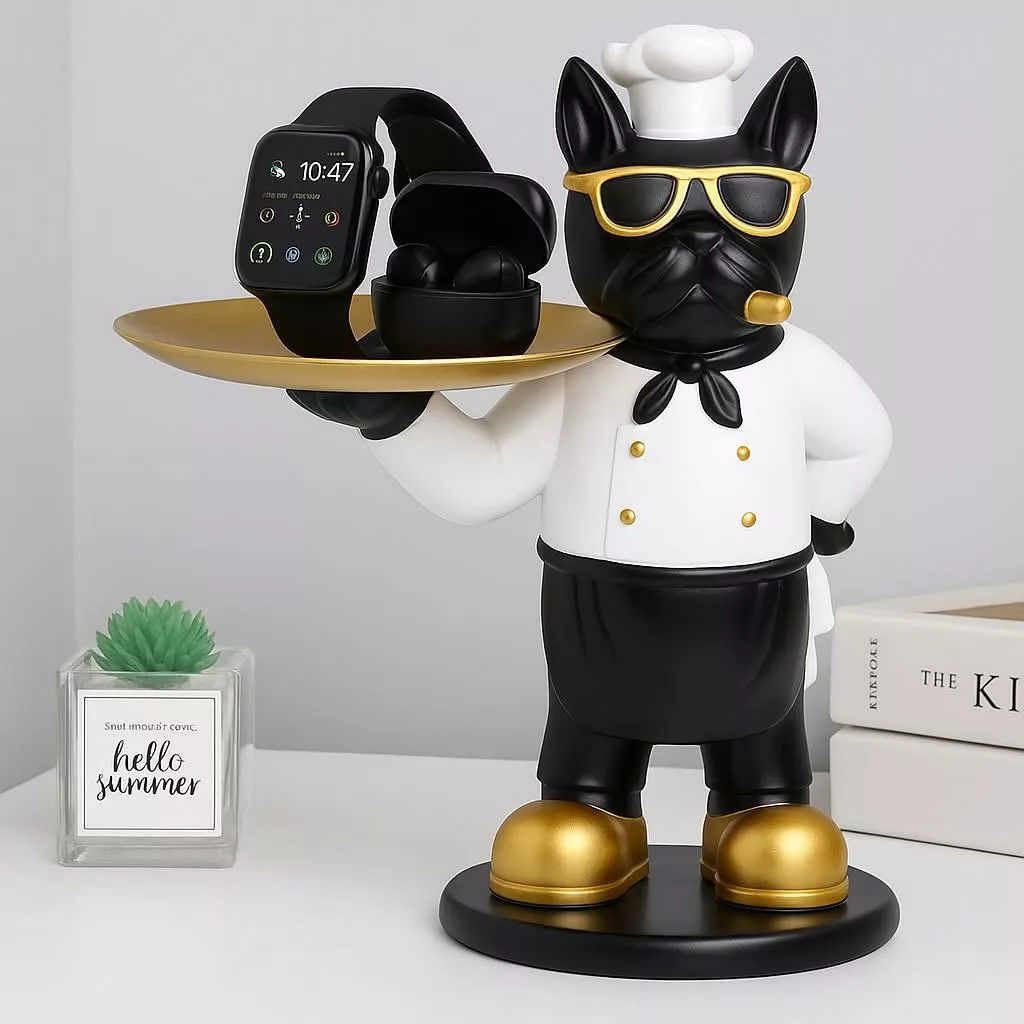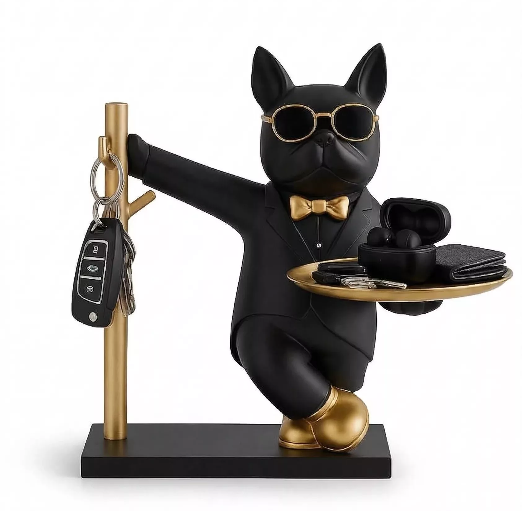 Statue Vide-Poche Bouledogue “Le Majordome” – Plateau & Porte-Clés Intégré