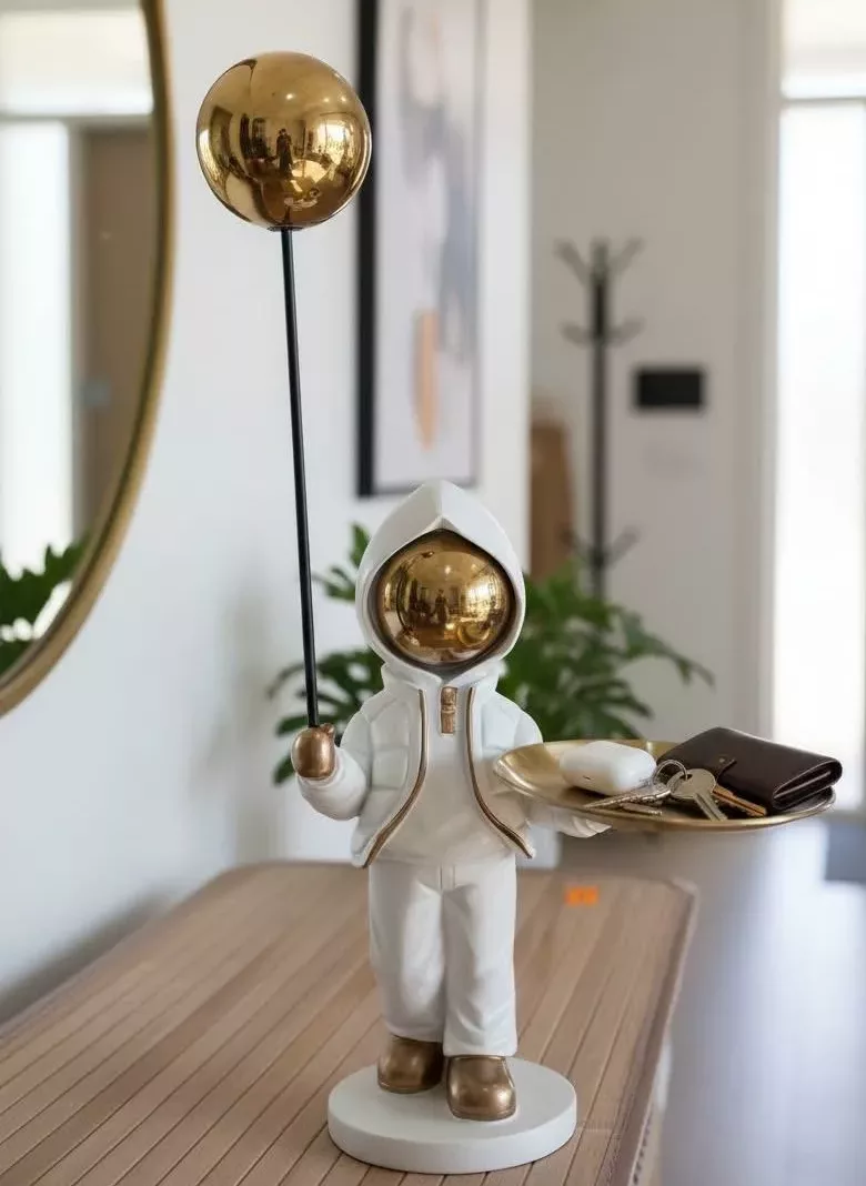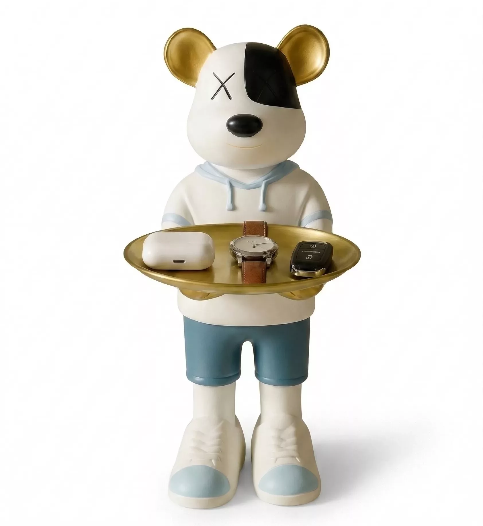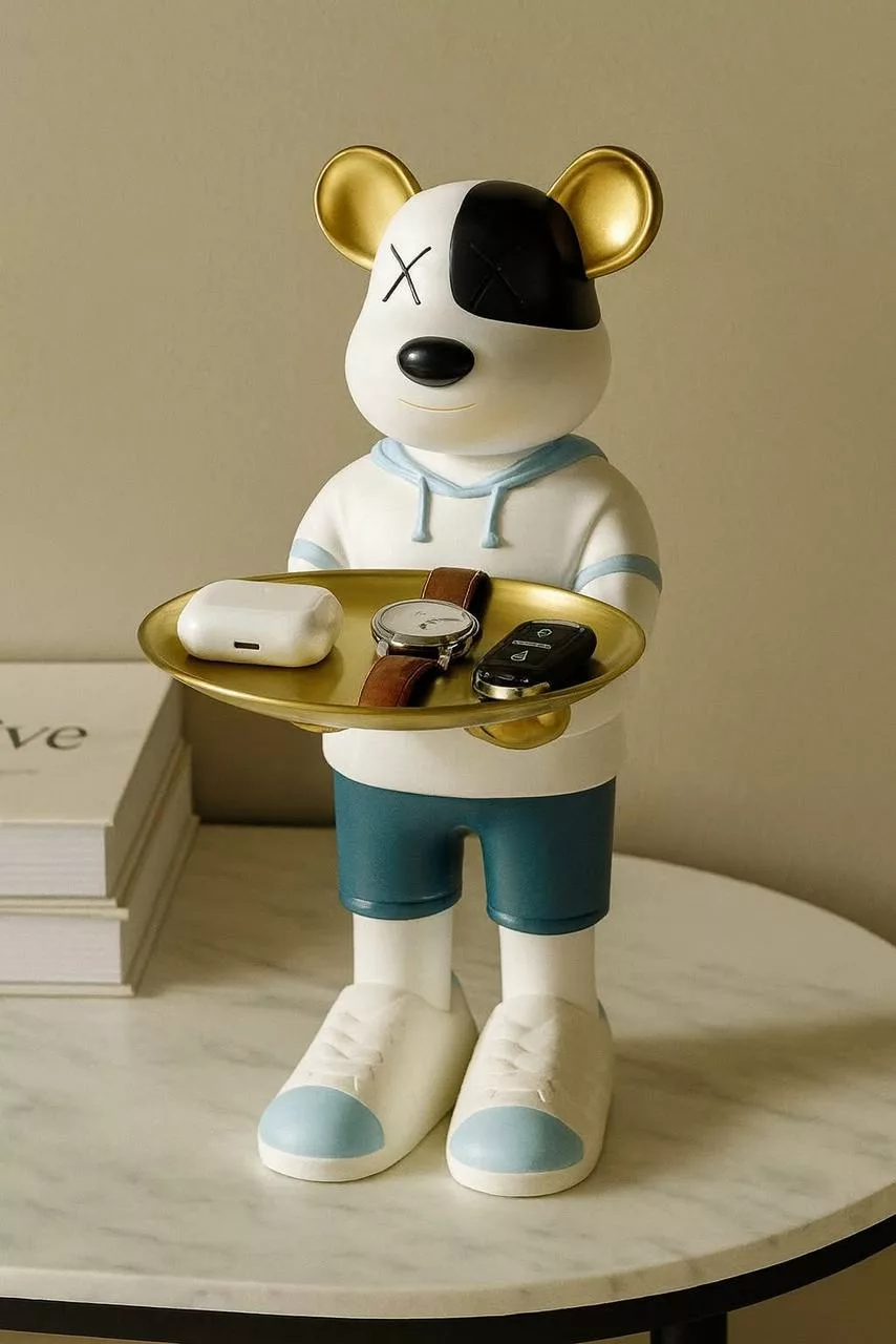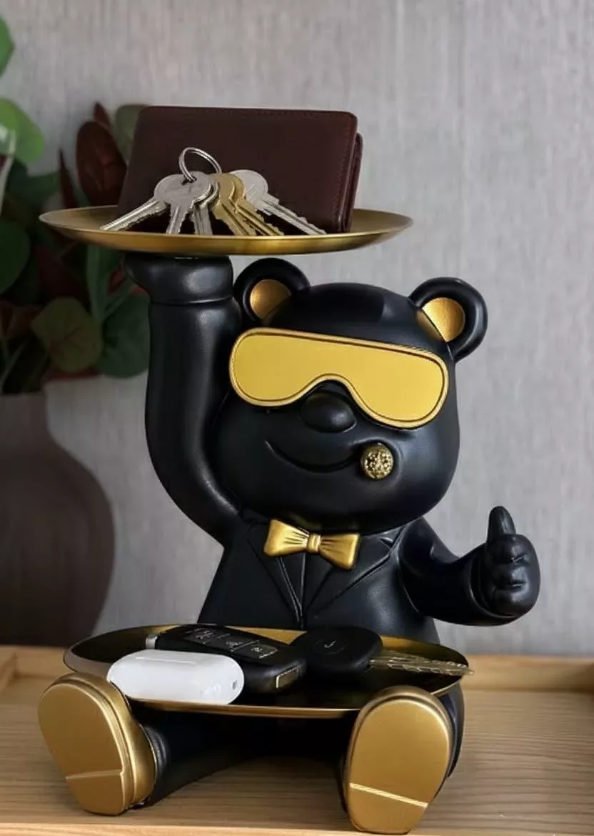 Statue Vide-Poche Bouledogue “Le Majordome” – Plateau & Porte-Clés Intégré