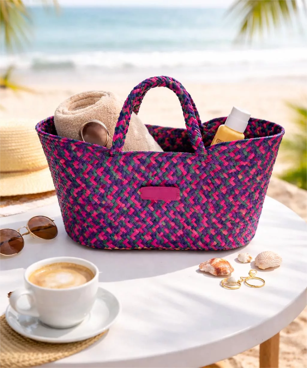 Apportez une touche de style et de praticité à votre intérieur avec ce panier de rangement tressé aux nuances élégantes de violet et de gris. À la fois décoratif et fonctionnel, il s’intègre parfaitement dans un salon, une chambre, une salle de bain ou même un bureau.