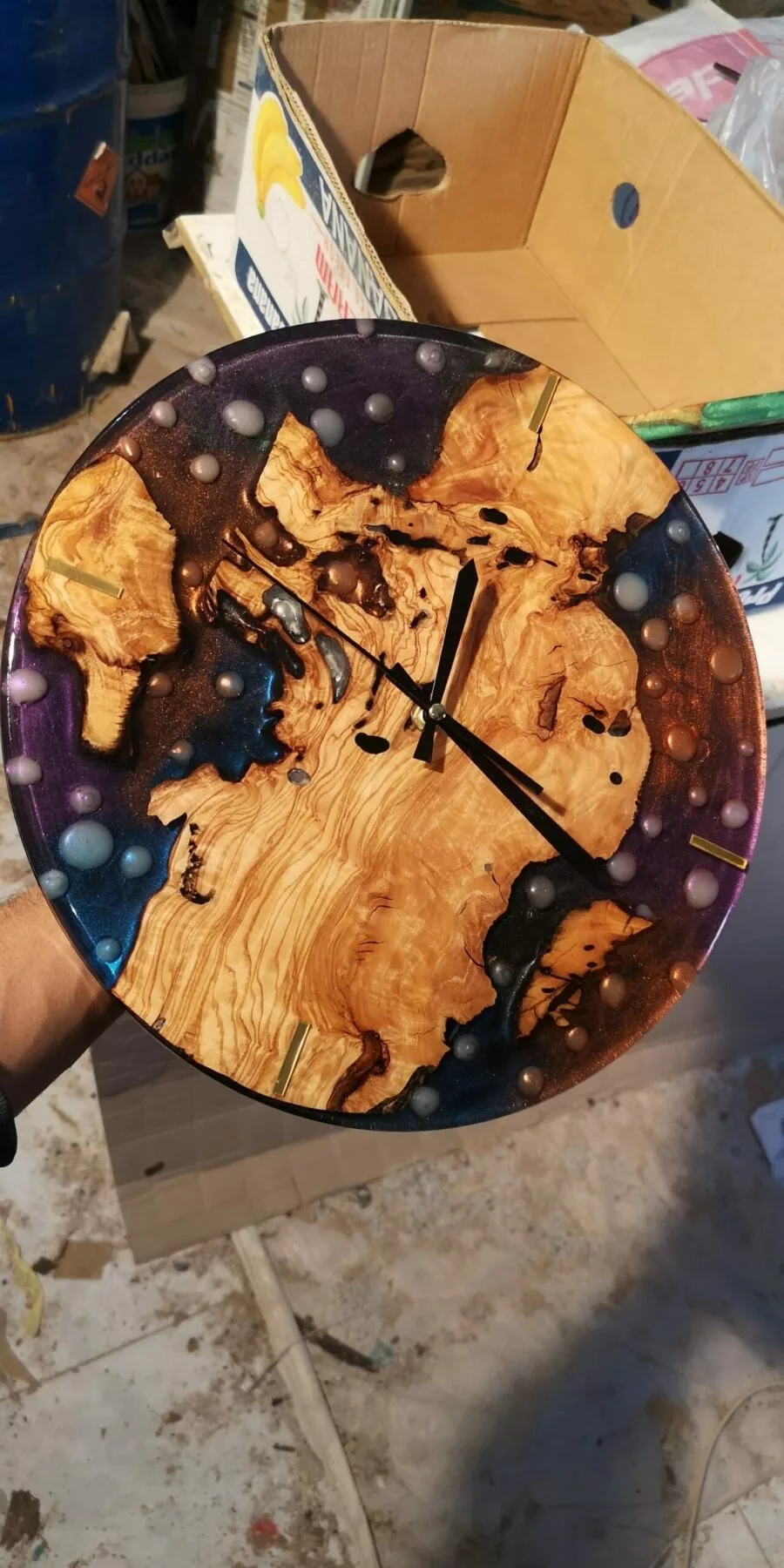 Horloge Murale Artisanale Bois & Résine – Galaxy