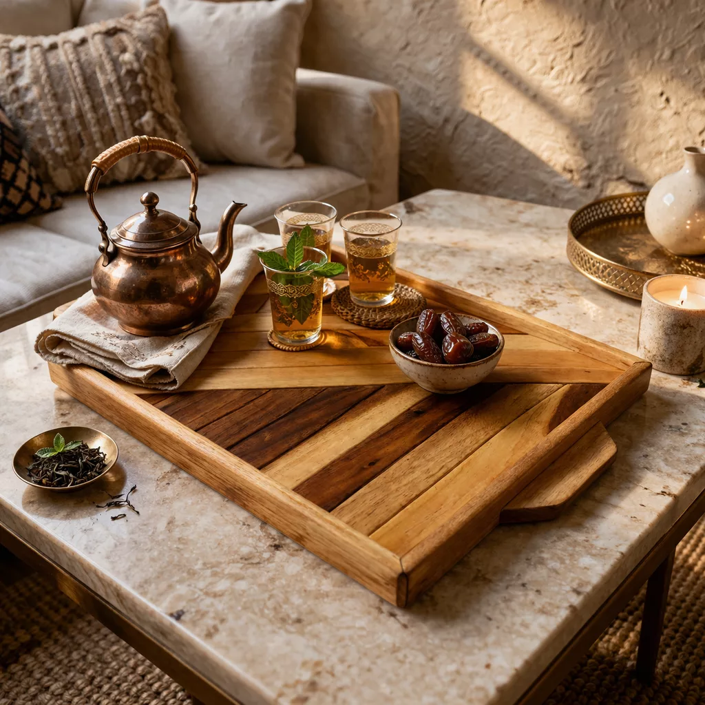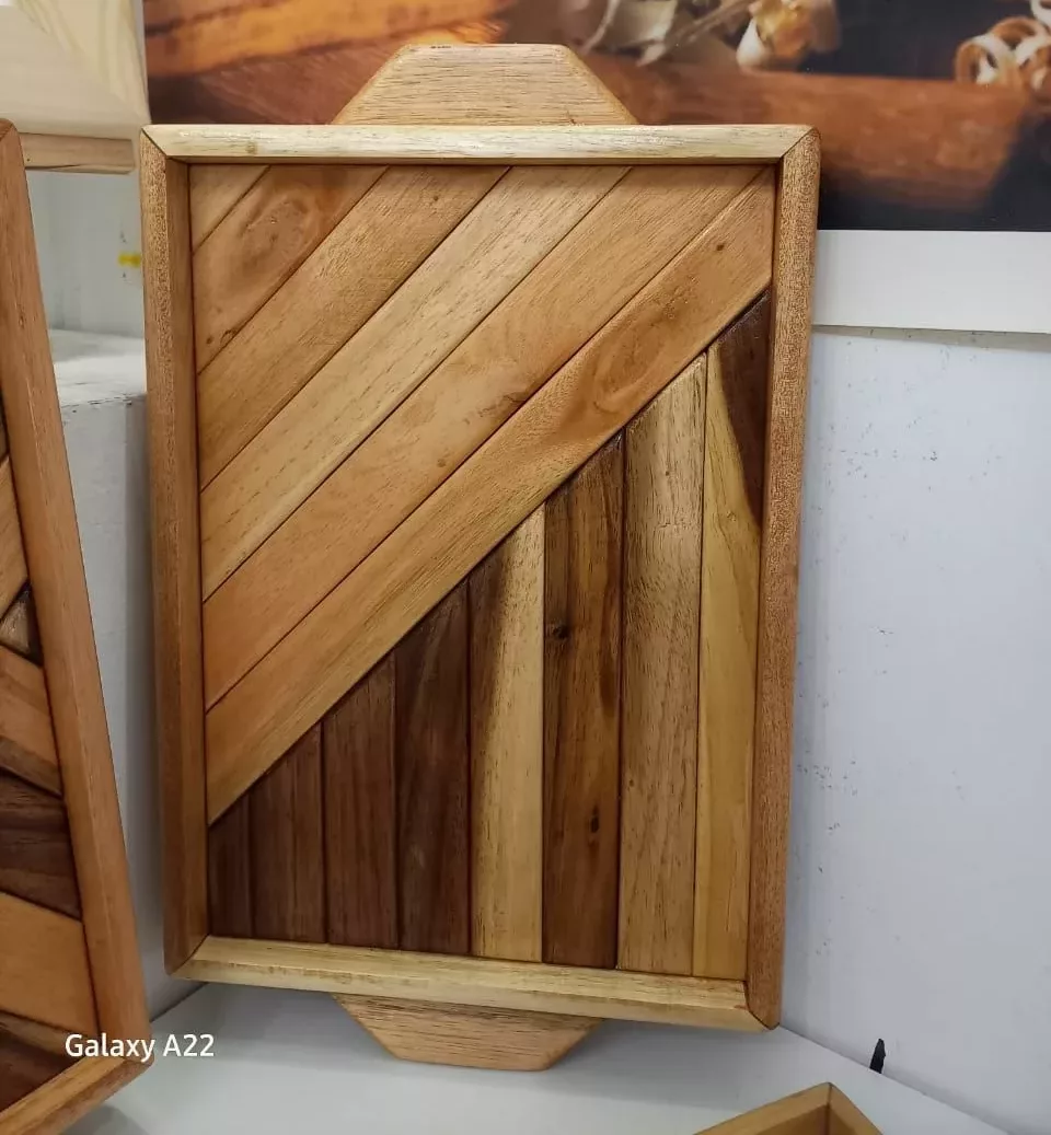 Plateau décoratif en bois artisanal – Élégance naturelle & design géométrique
