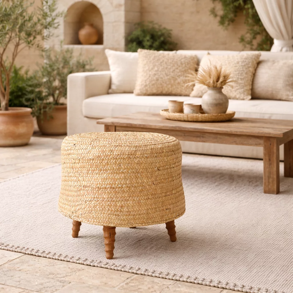 Apportez une touche naturelle à votre intérieur avec ce pouf artisanal en fibres tressées. À la fois décoratif et pratique, il peut servir de siège d’appoint ou repose-pieds. Son style bohème et naturel s’intègre facilement dans un salon, une chambre ou un espace détente.