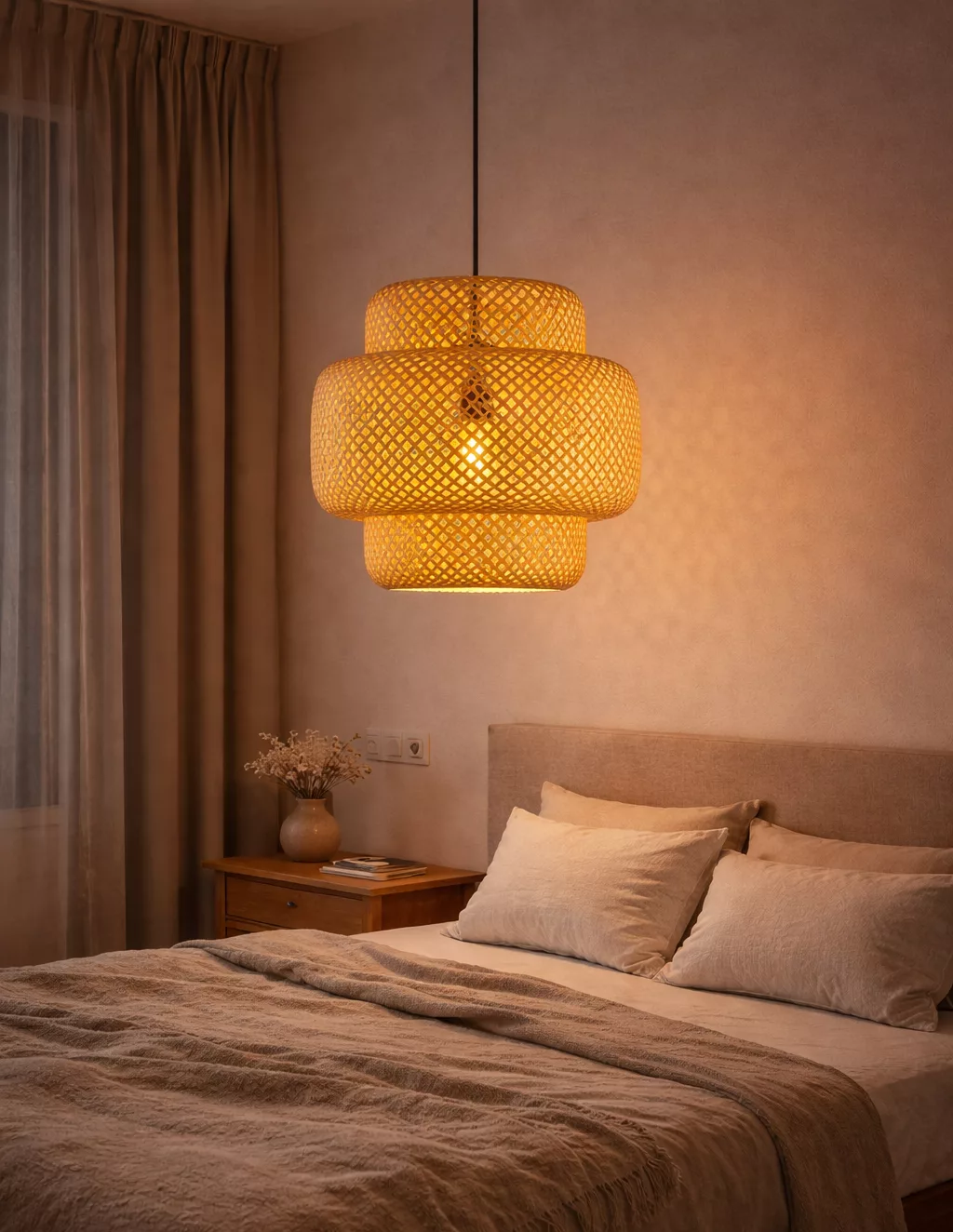 Transformez votre intérieur avec cette magnifique suspension en rotin tressé, au design rond élégant et ultra tendance. Sa forme superposée à 3 niveaux apporte du volume et du caractère, tout en diffusant une lumière douce et chaleureuse grâce au tressage ajouré qui crée un superbe effet d’ombres.