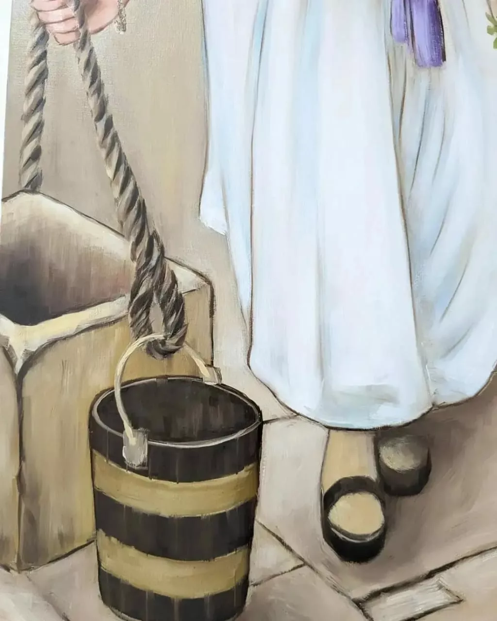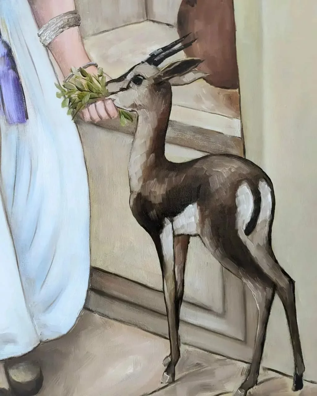 Apportez une touche d’authenticité et d’élégance à votre intérieur avec ce tableau unique représentant une femme en habit traditionnel nourrissant une gazelle. Réalisée avec finesse et souci du détail, cette œuvre met en valeur le patrimoine culturel et la beauté de la scène.